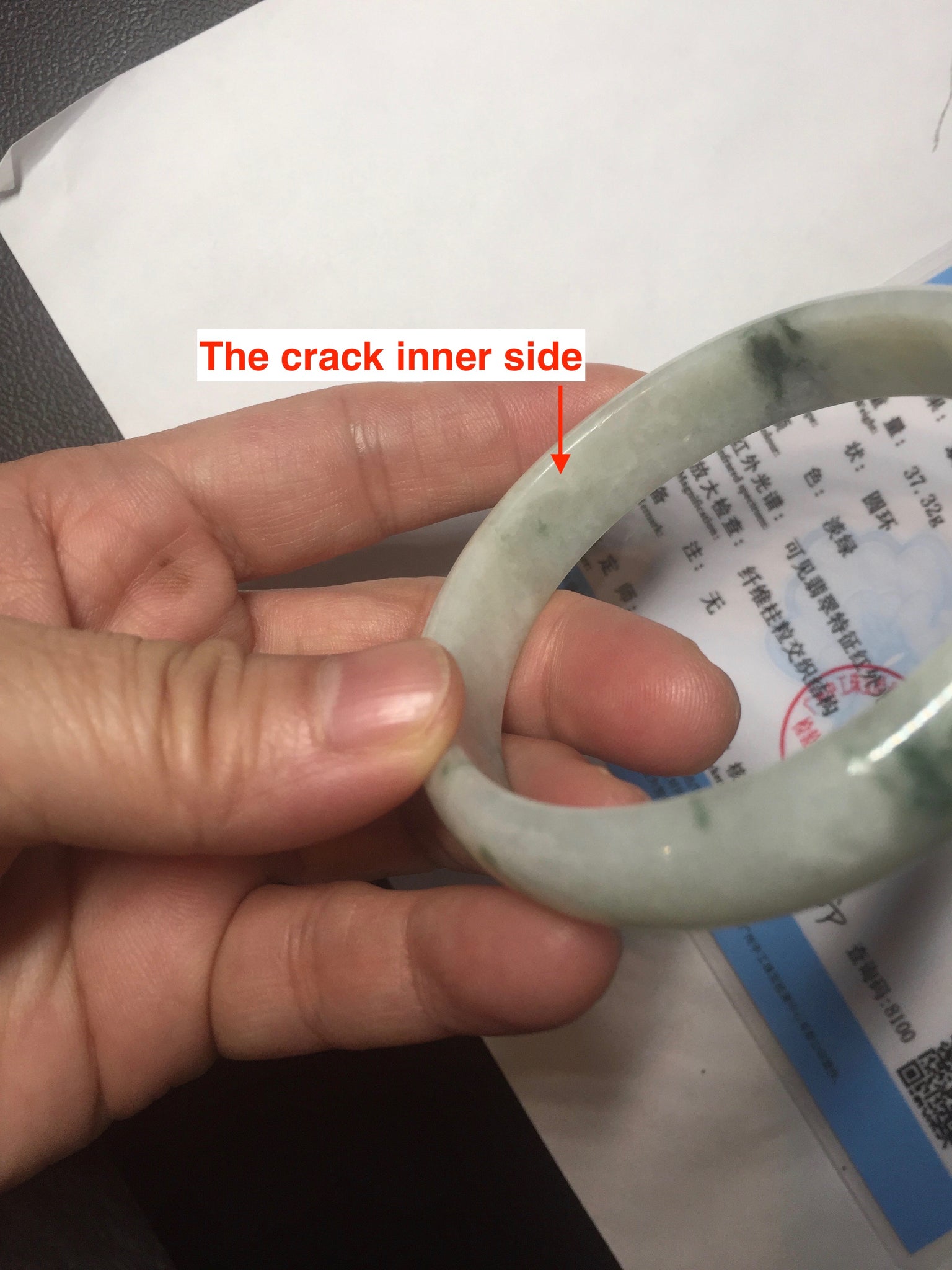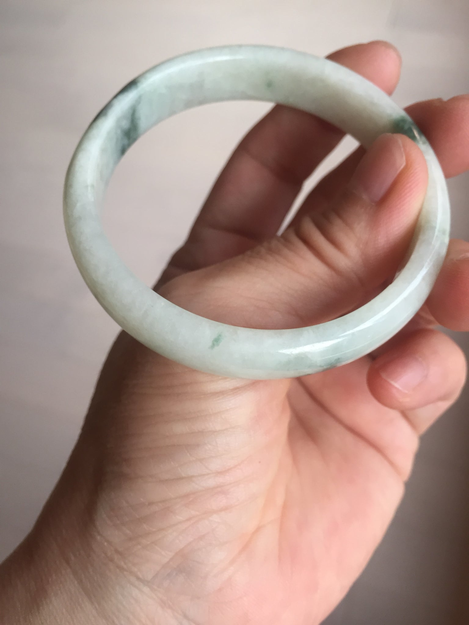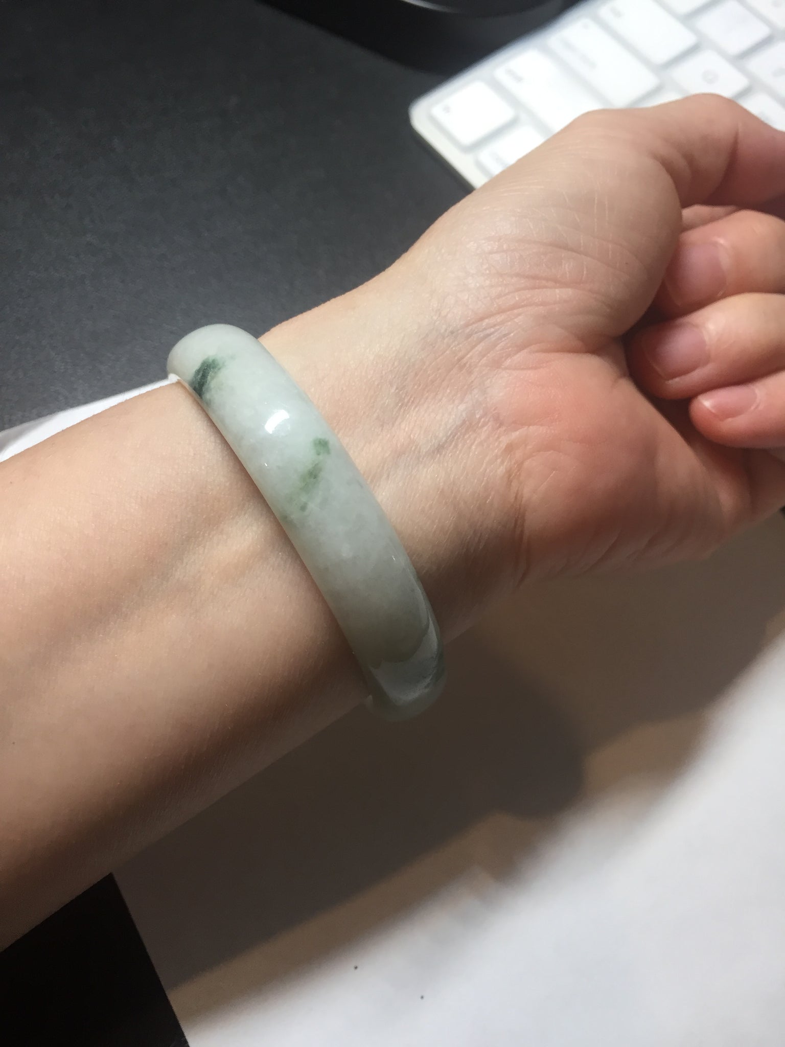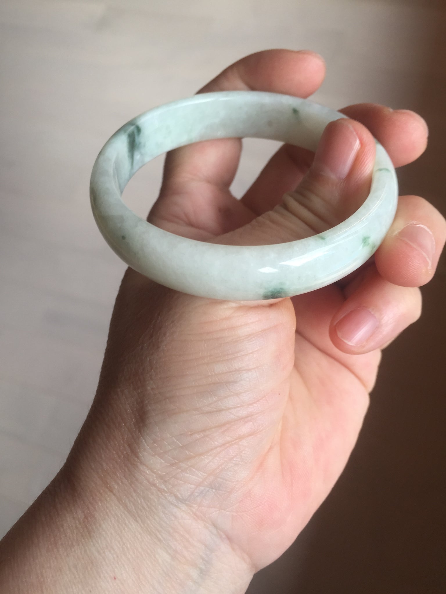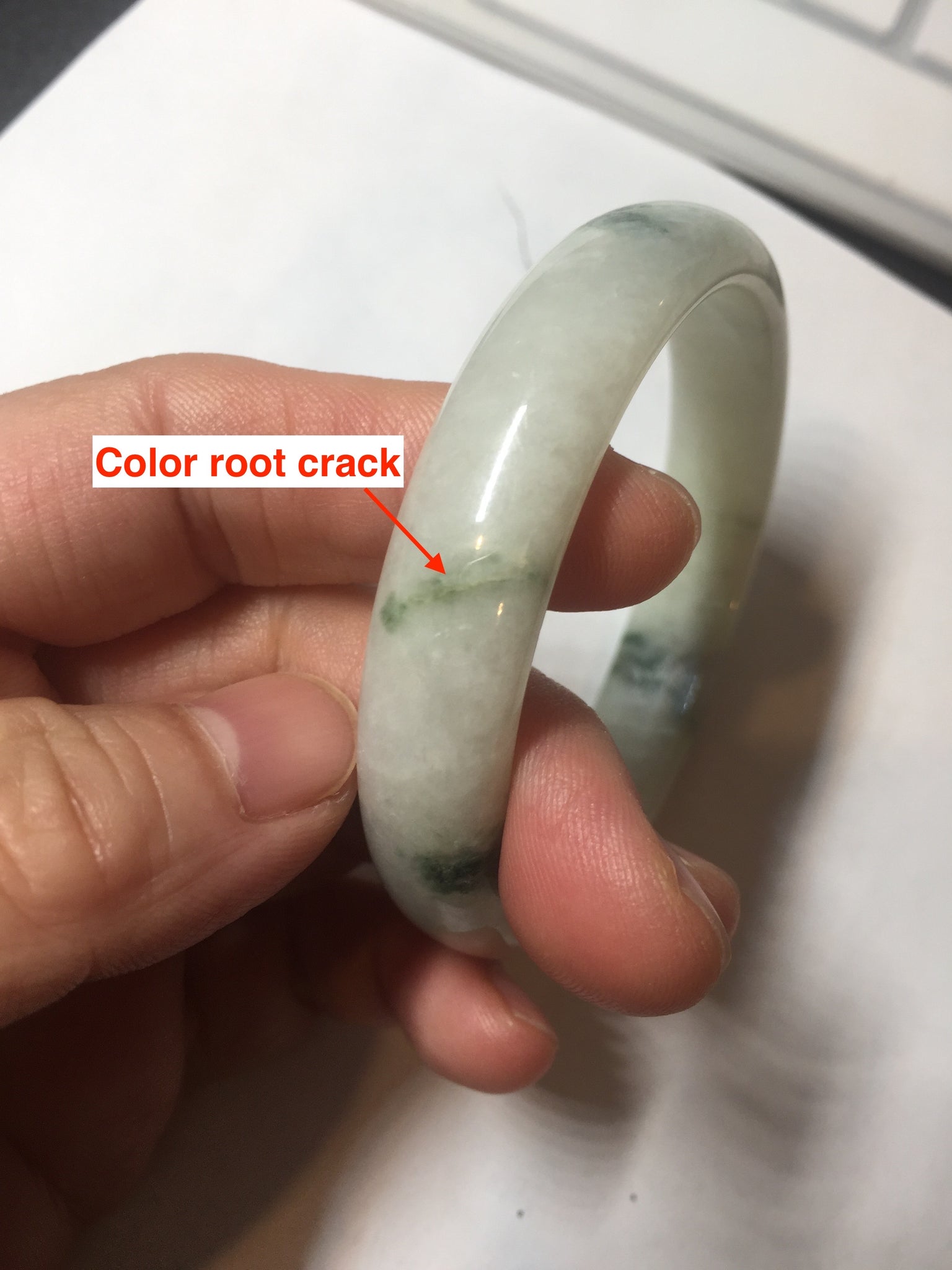 • Load image into Gallery viewer, 55.5mm Certified type A 100% Natural light green with green flying flowers Jadeite bangle D131-4024