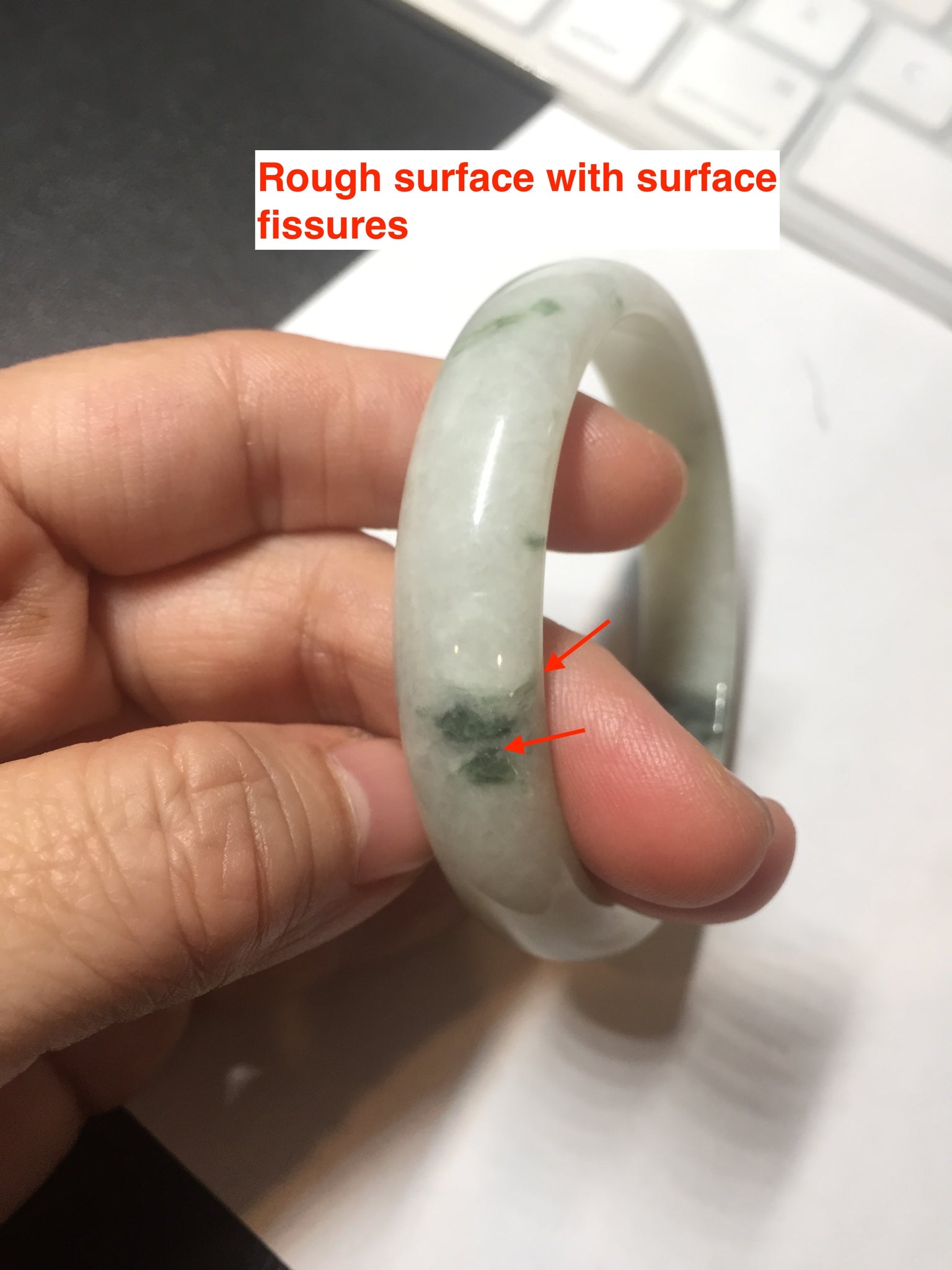 Some rough surfaces with surface scratches and fissures. One big rough surface has a tiny bit of wax. Some hairlines and cotton lines.  One part is thinner than the rest parts (5.9 vs 5.1mm).