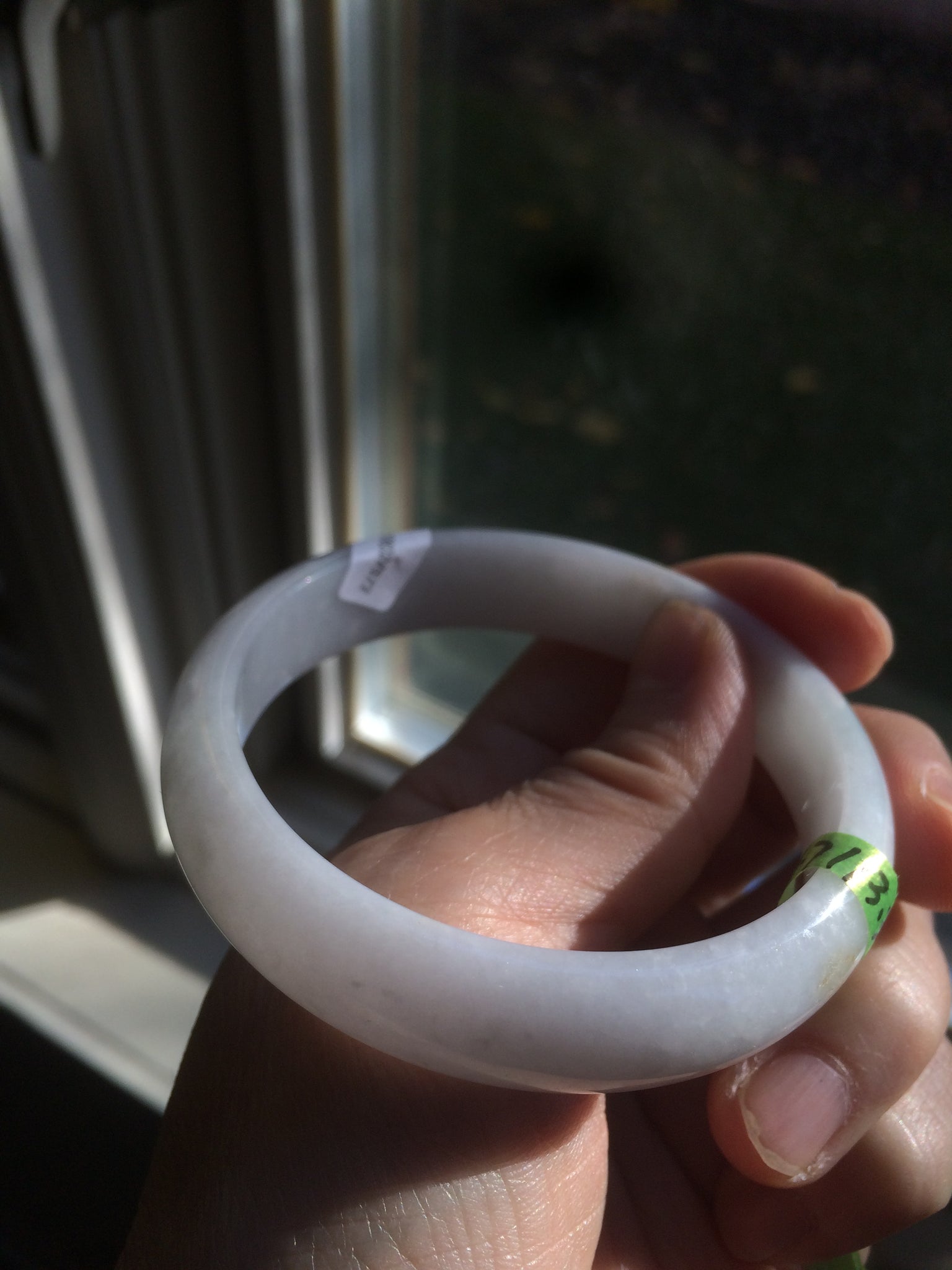 55.7mm certified Type A 100% Natural white/yellow Jadeite Jade bangle E57-7572