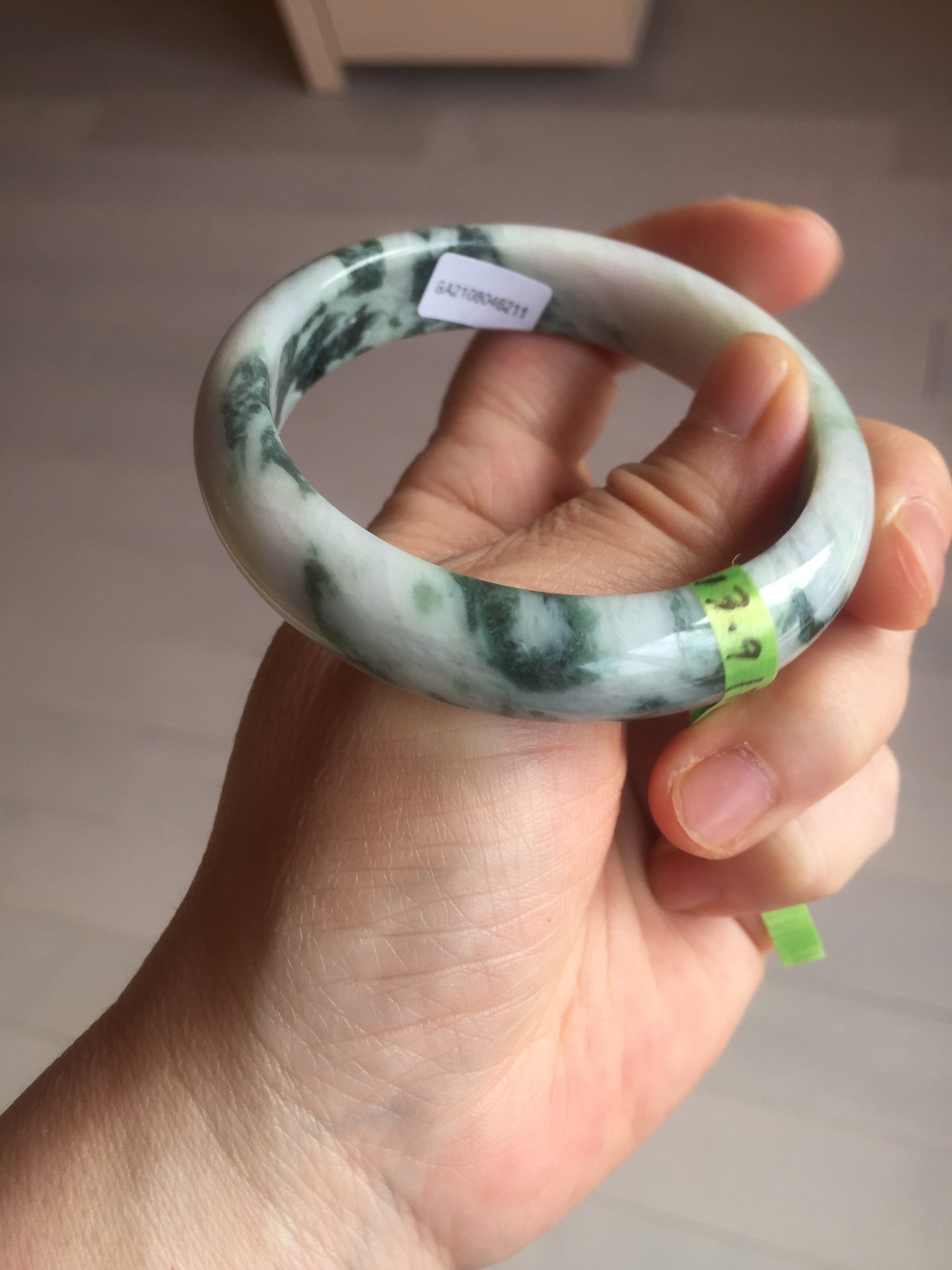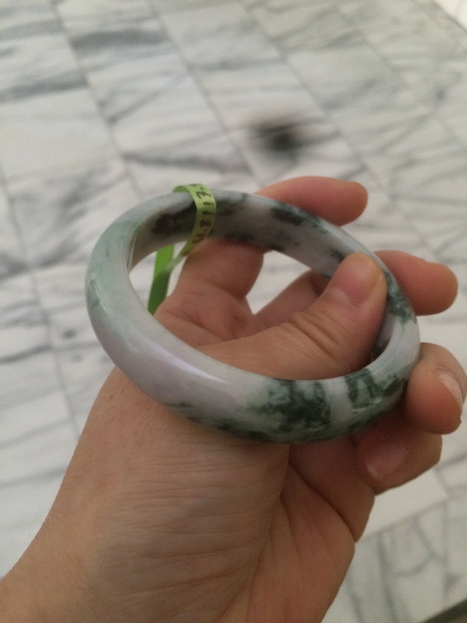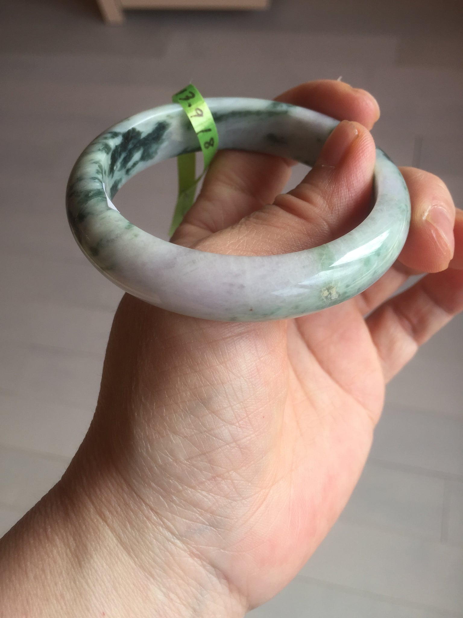 No crack. No hairline. Quite a lot of cotton lines, are called "white roots". It commonly appears when a jadeite jade has a purple color. No transparent. Not so waterly. The purple is really light. Lighter than photos since purple is always more camera-friendly.