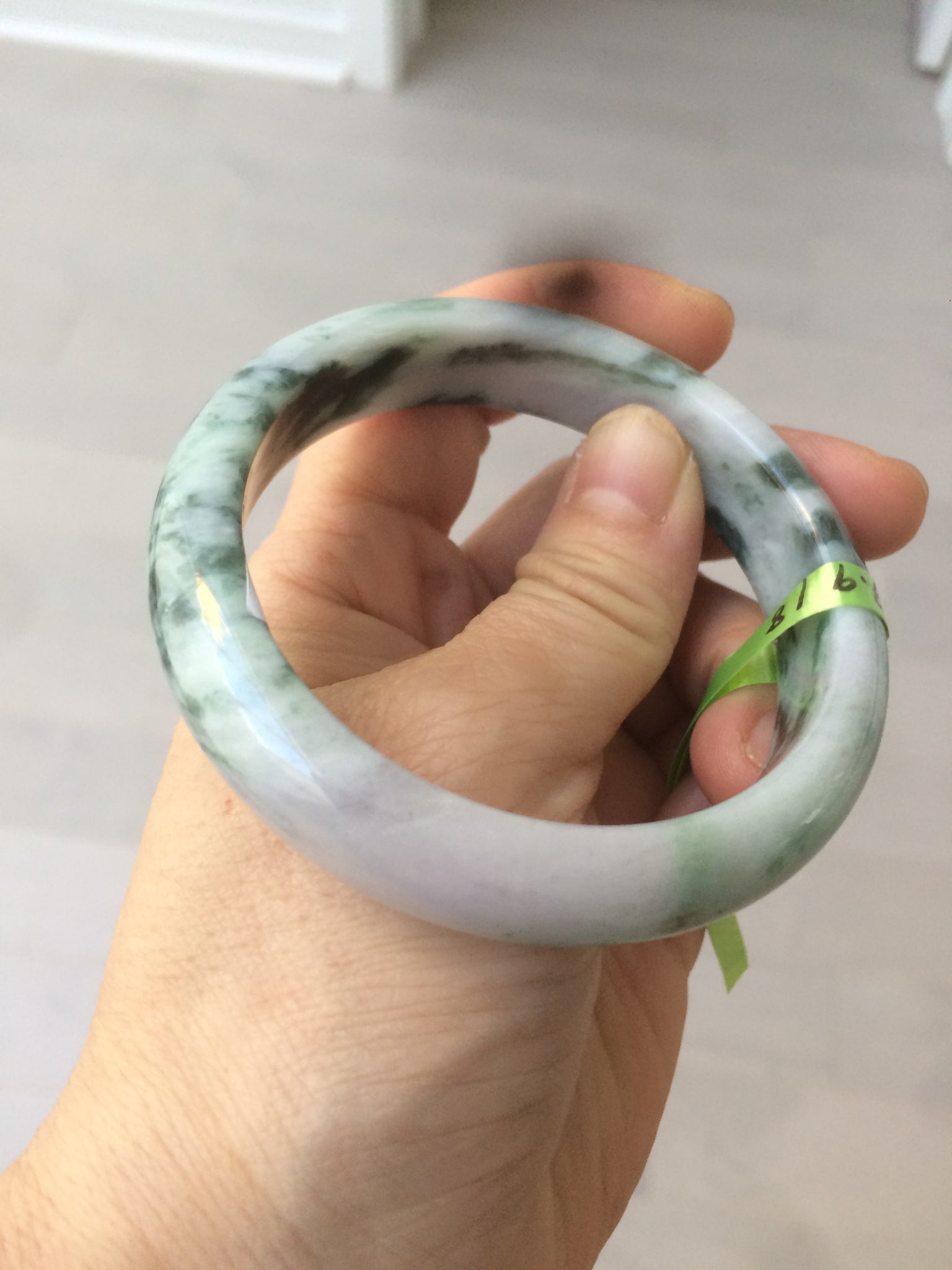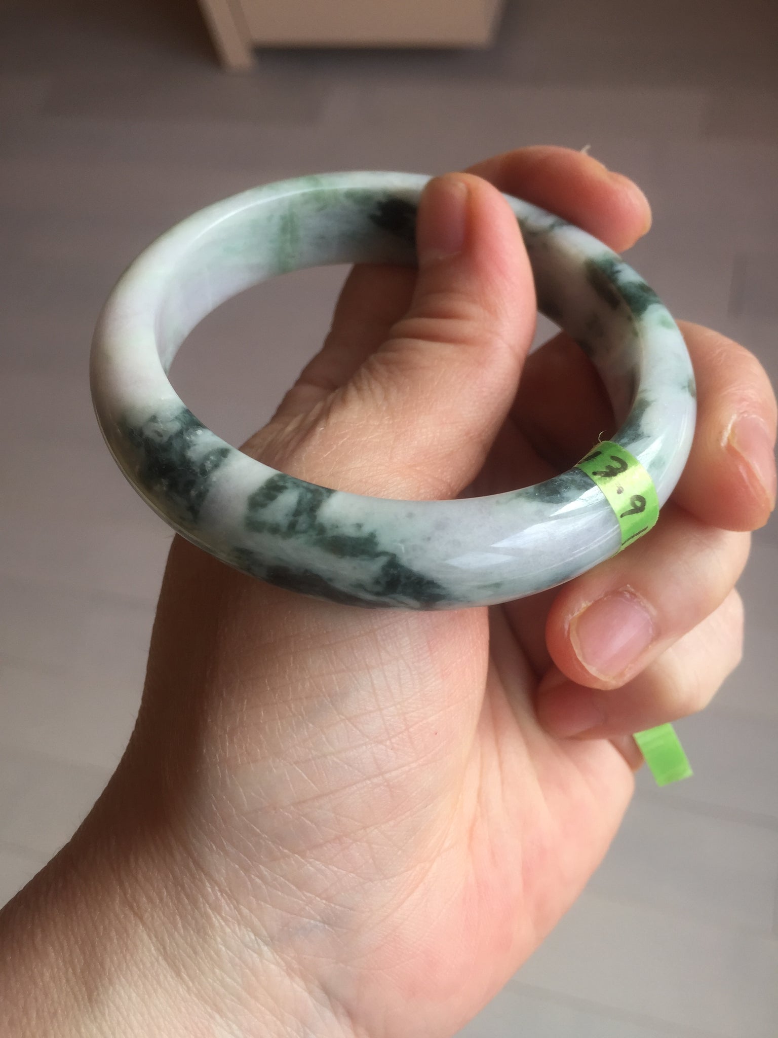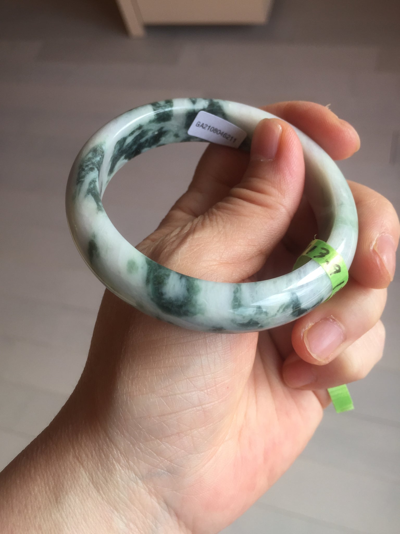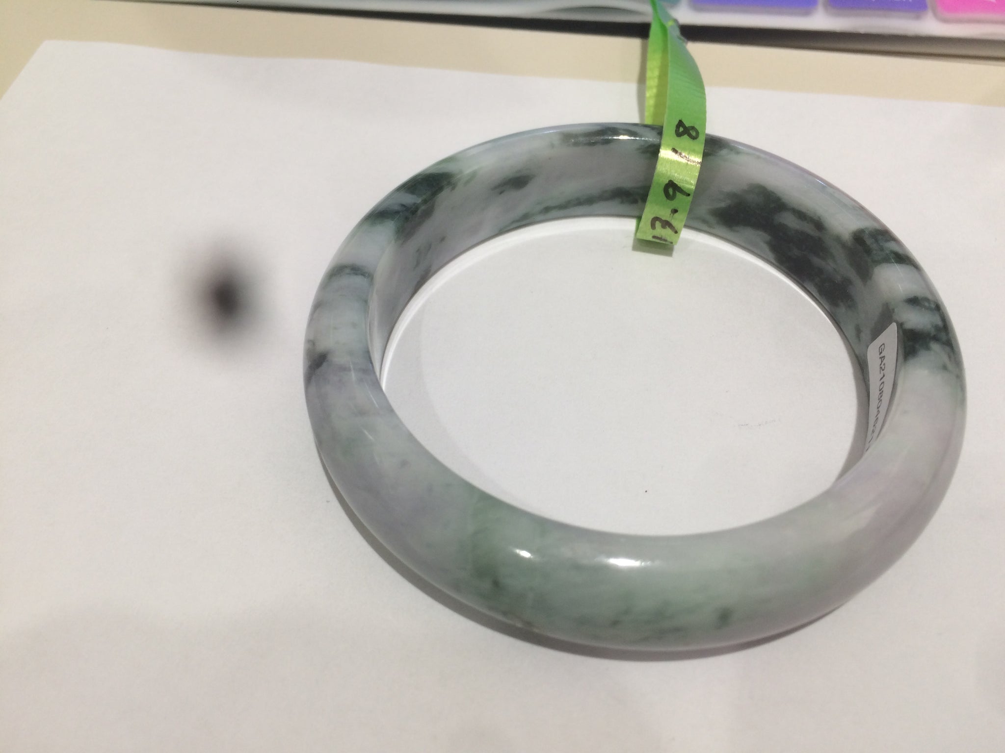 No crack. No hairline. Quite a lot of cotton lines, are called "white roots". It commonly appears when a jadeite jade has a purple color. No transparent. Not so waterly. The purple is really light. Lighter than photos since purple is always more camera-friendly.