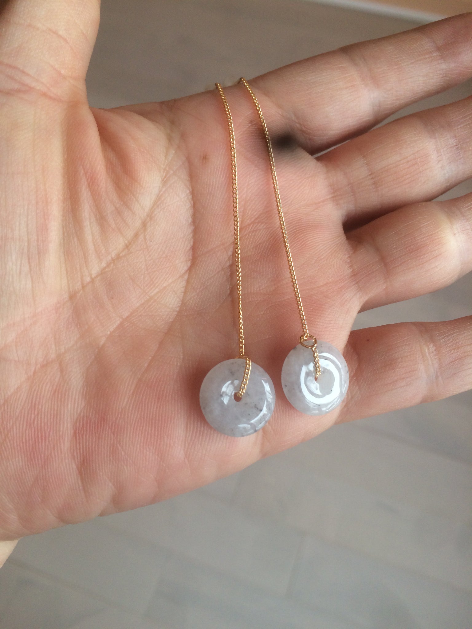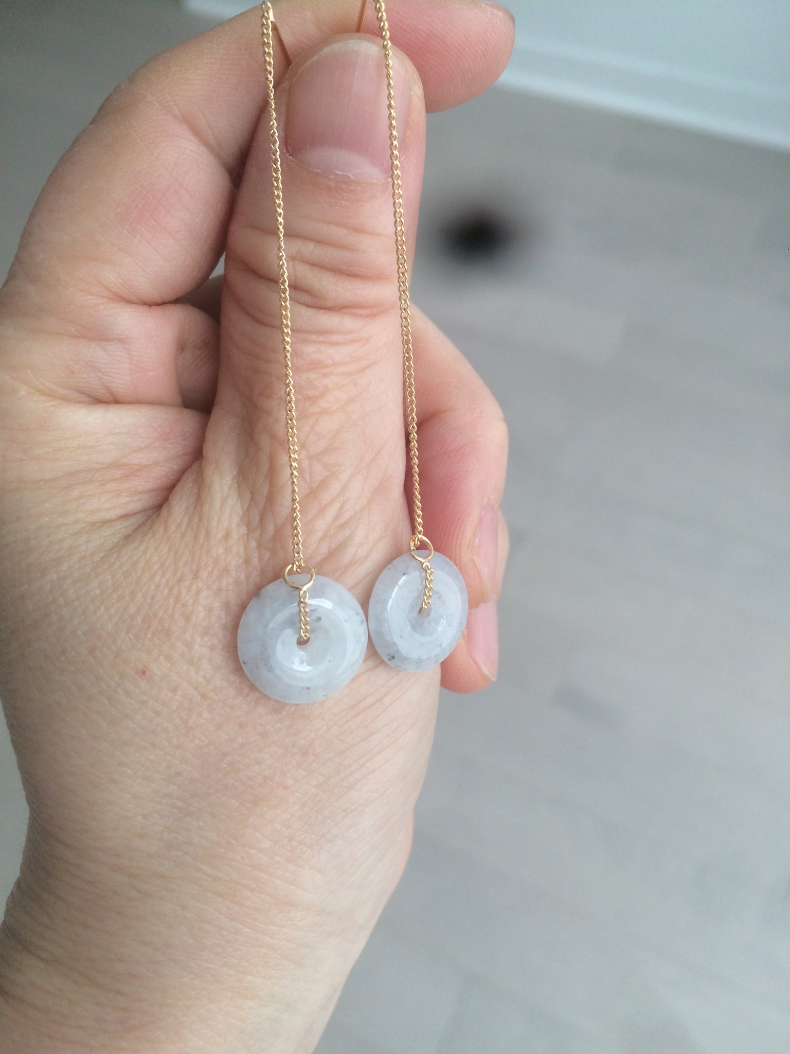 100% Natural Jadeite Jade earrings with chain. The dangling chain makes it easy to adjust how long you want your earring to be.