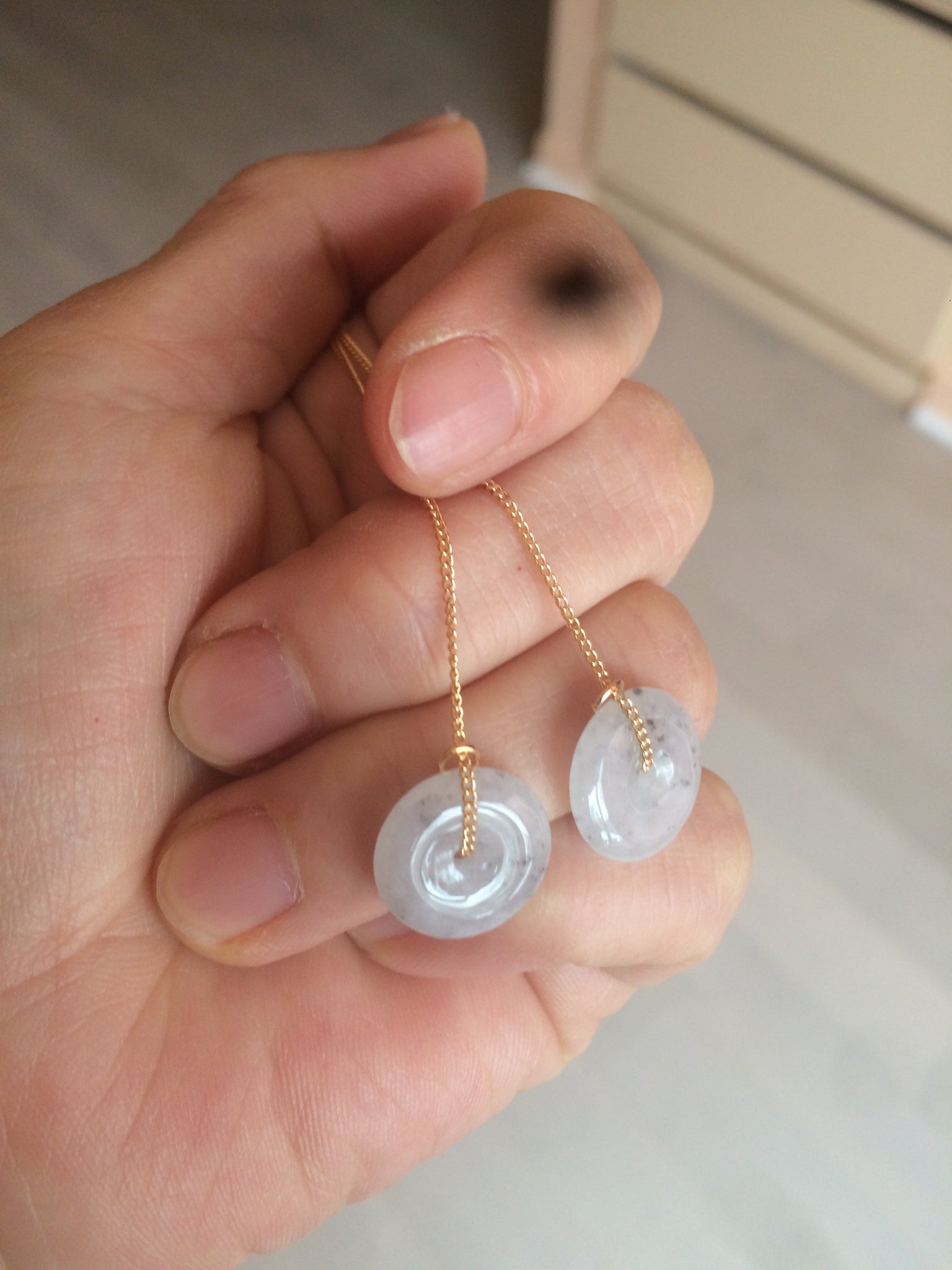 • Load image into Gallery viewer, 100% Natural icy watery white/black (冰乌鸡) safety guardian donut dangling jadeite Jade earring D81