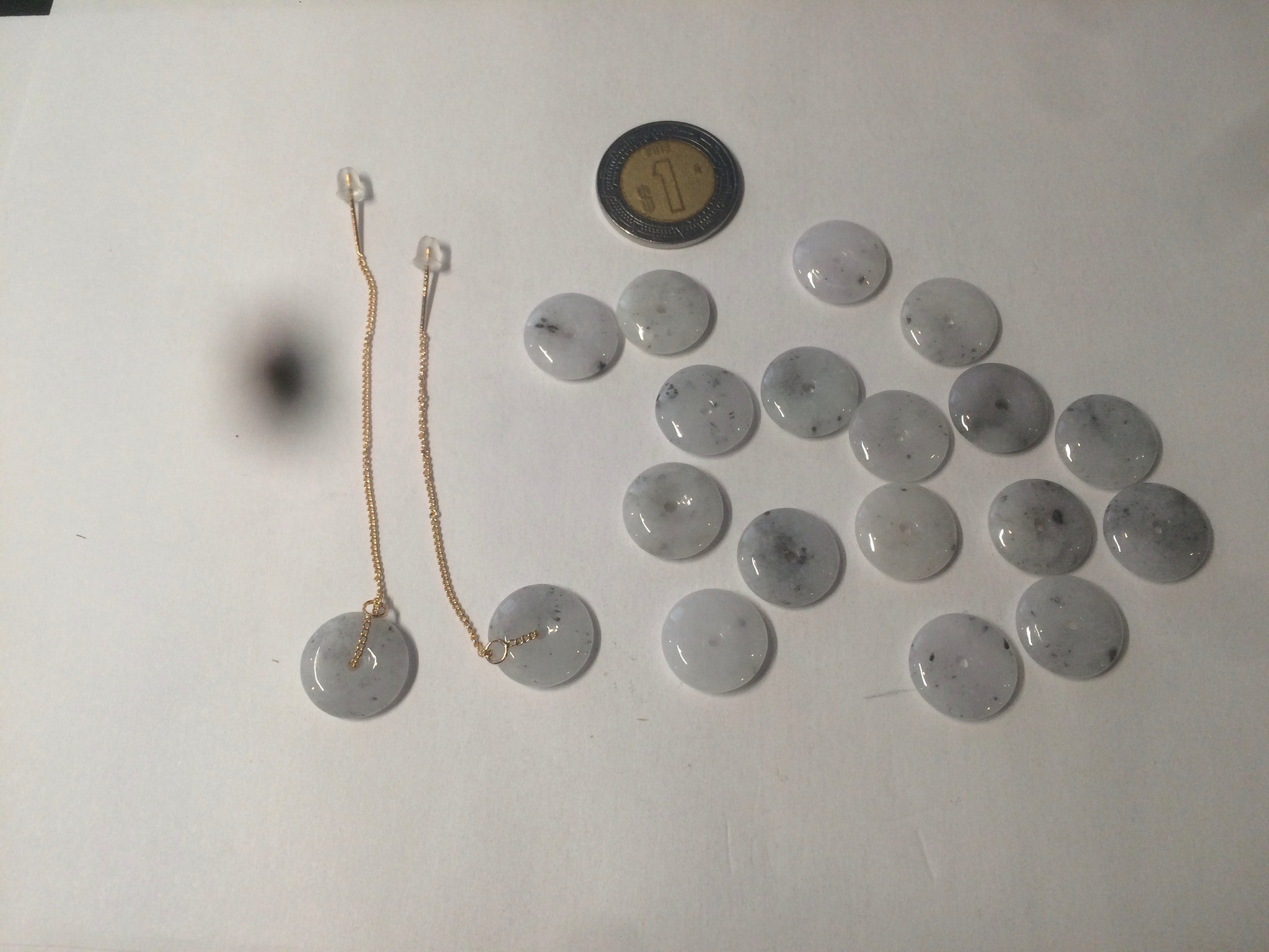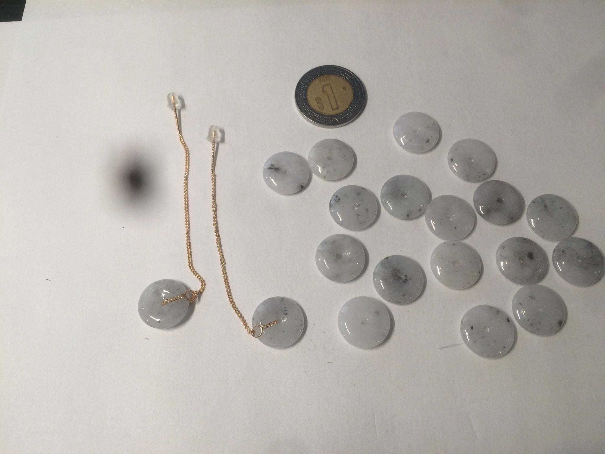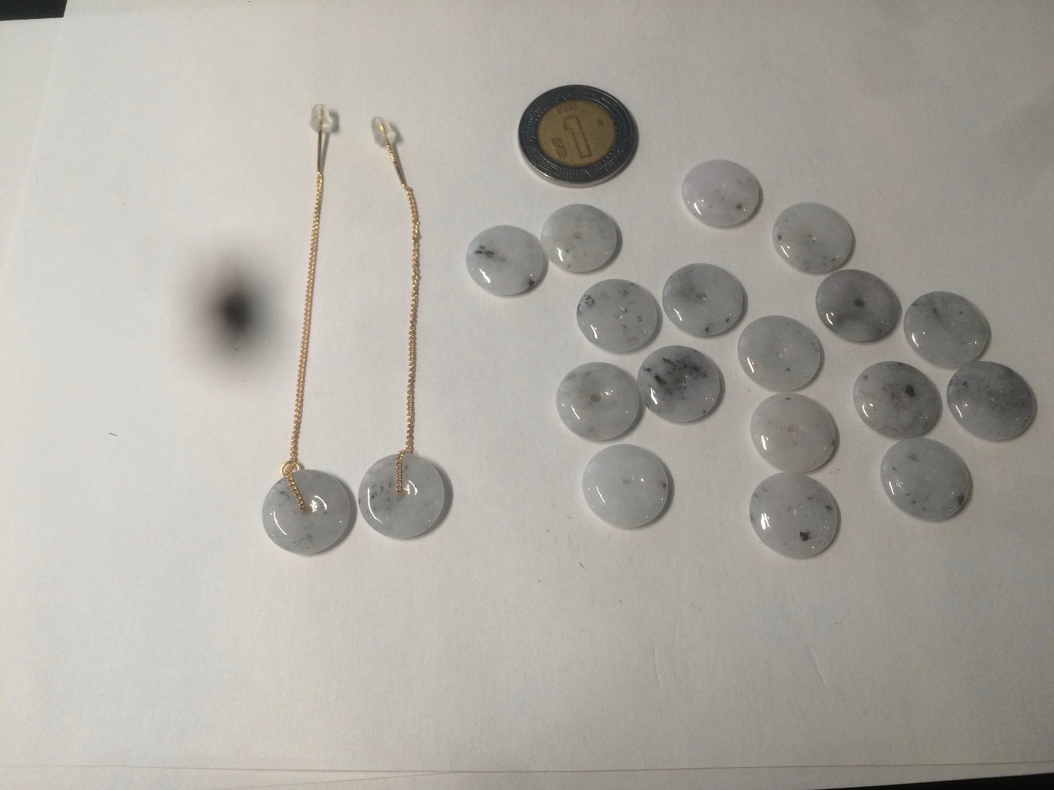 Beads size: Small Around 13mmx3.1mm Handmade beads are all unique. In a pair of earrings, the two jade beads are similar, but not exactly the same size and shape.