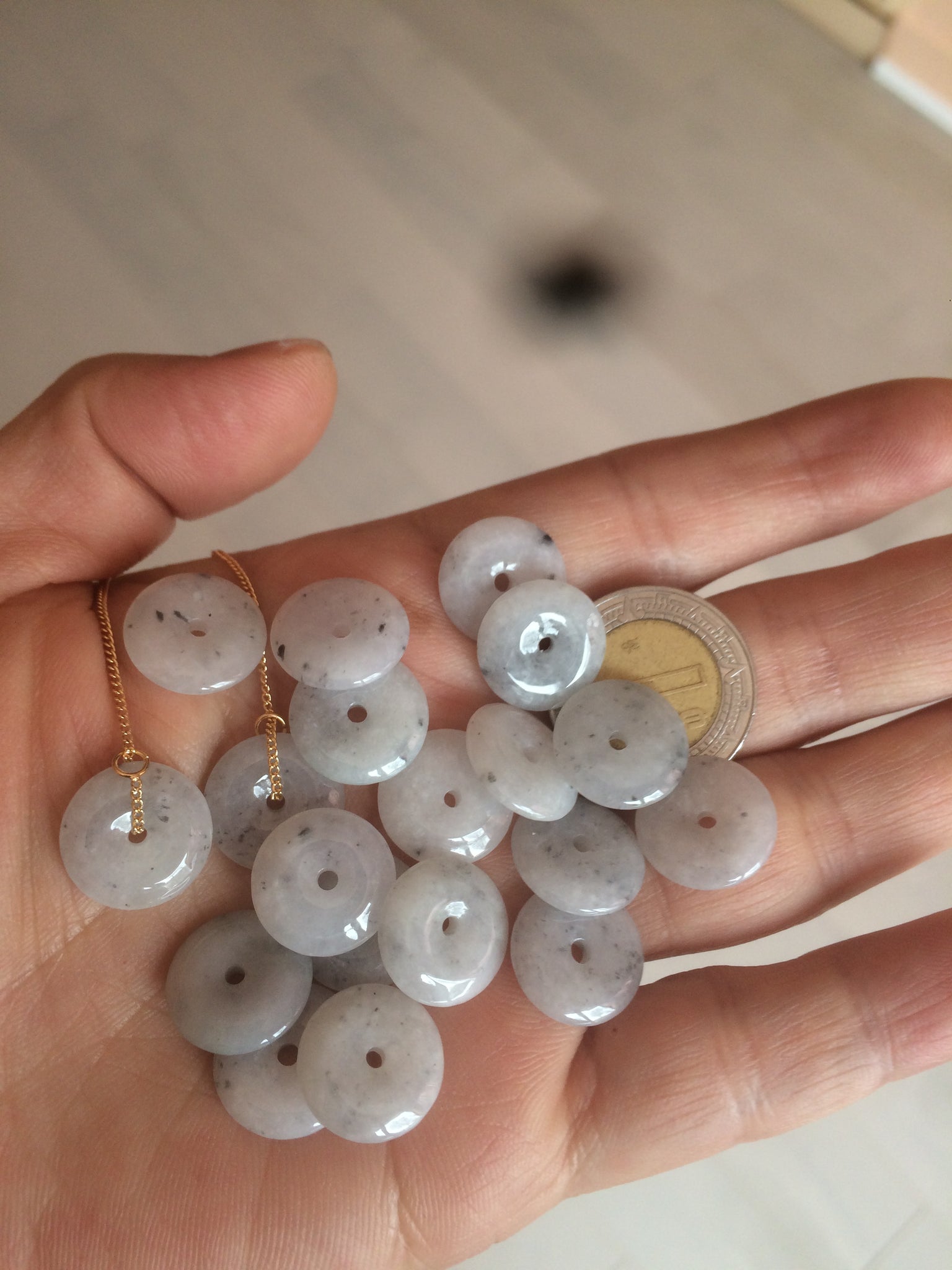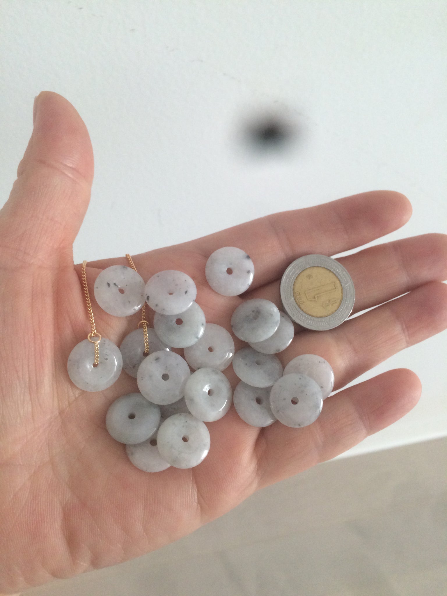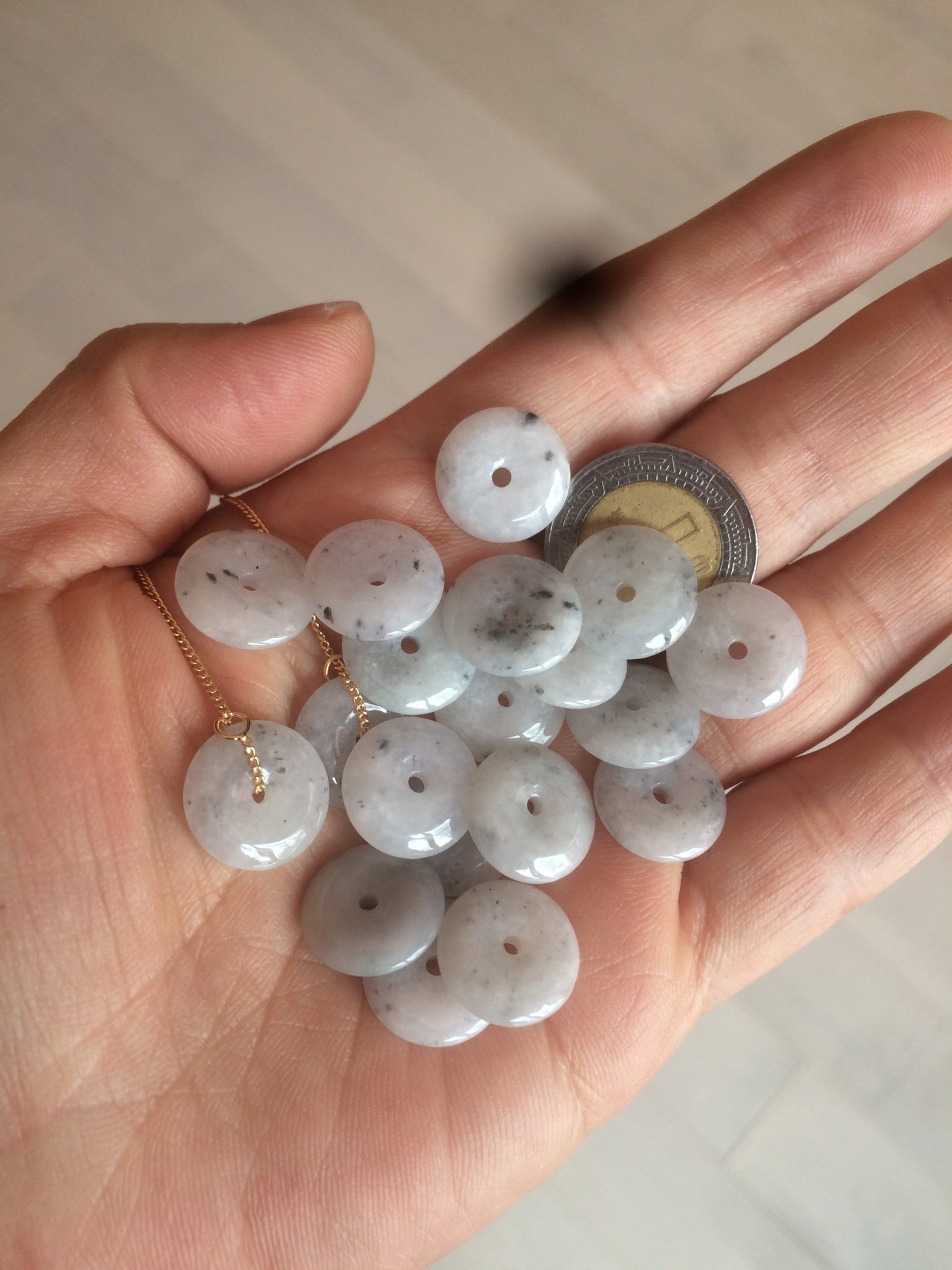 Beads size: Small Around 13mmx3.1mm Handmade beads are all unique. In a pair of earrings, the two jade beads are similar, but not exactly the same size and shape.