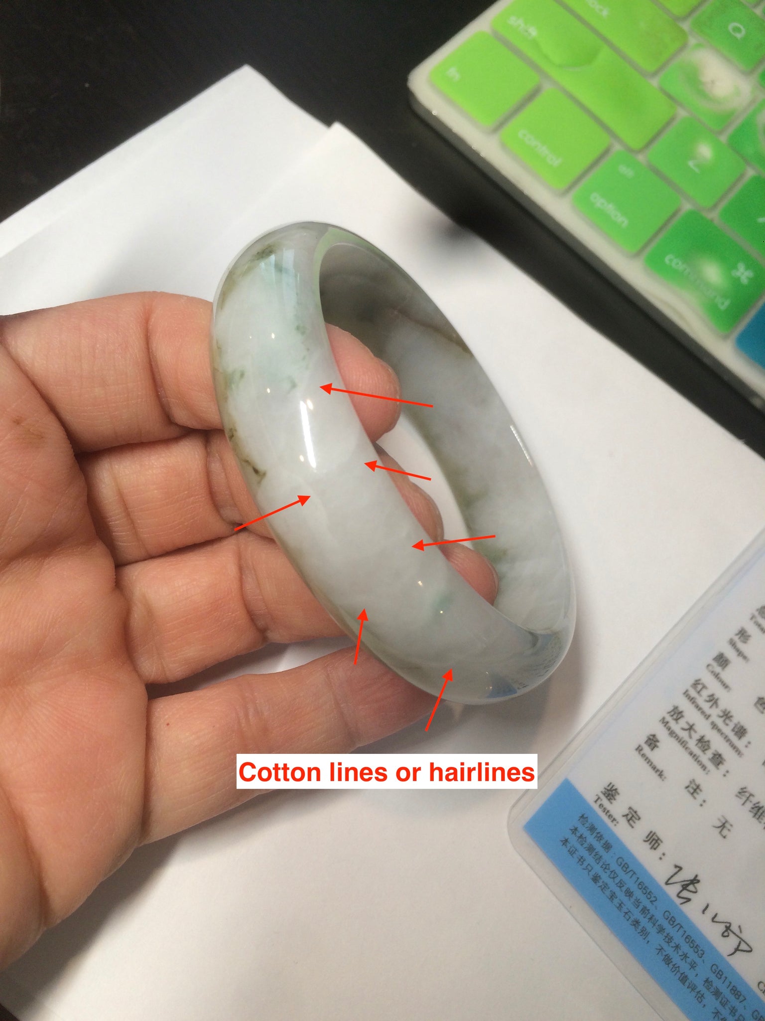 One U shape crack. Some hairlines/cotton lines/color roots and areas. Dark areas.