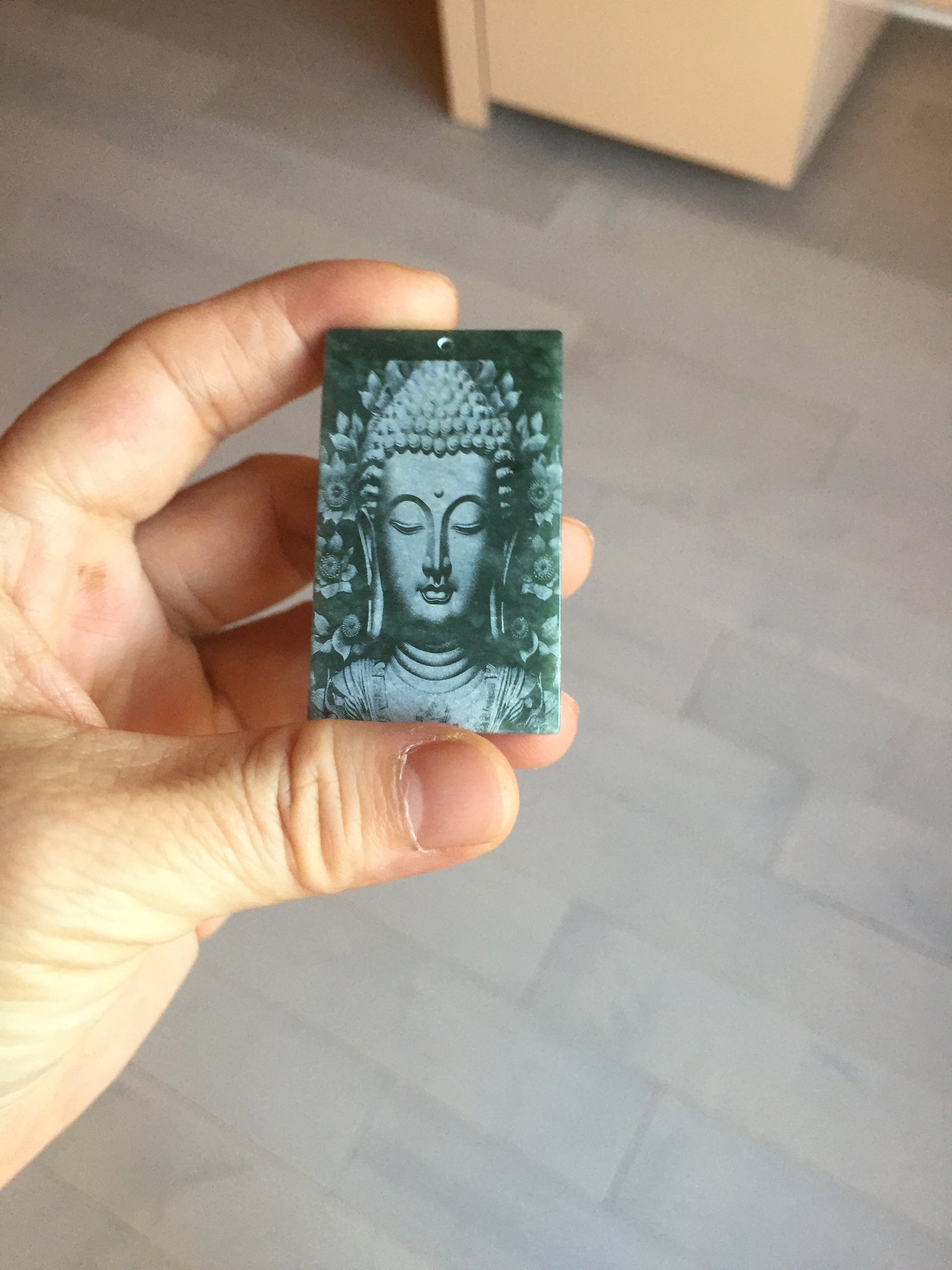 100% natural blue/gray Guatemala  jadeite jade Guanyin (观音) safe and sound pendant/worry stone/decor PD194