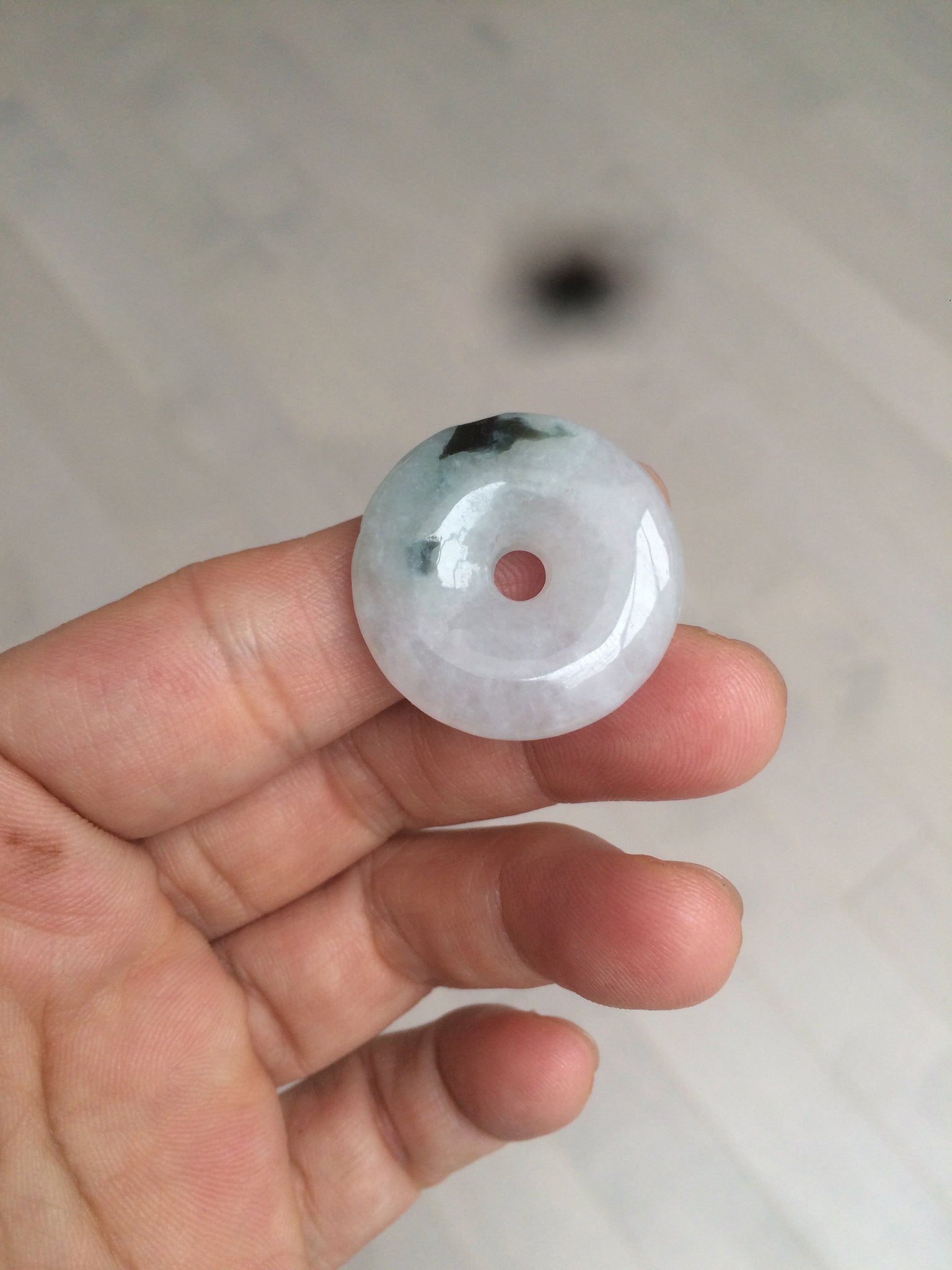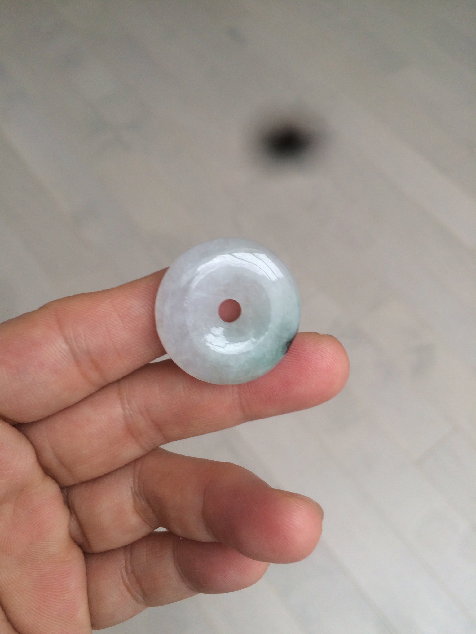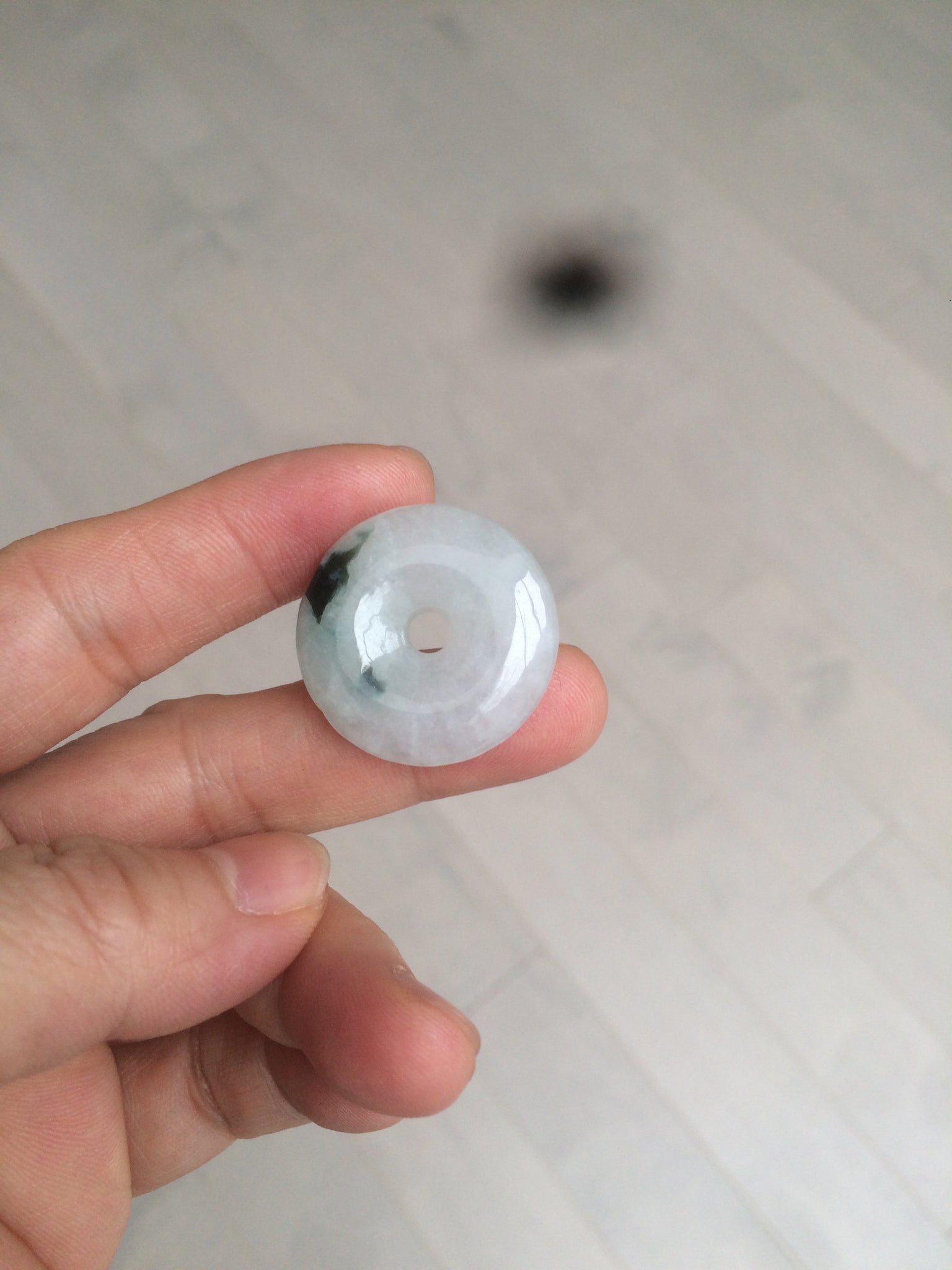 26.2/5.5mm 100% Natural icy watery green/white with green floating flowers jadeite Jade Safety Guardian Button(donut) Pendant/worry stone BF47