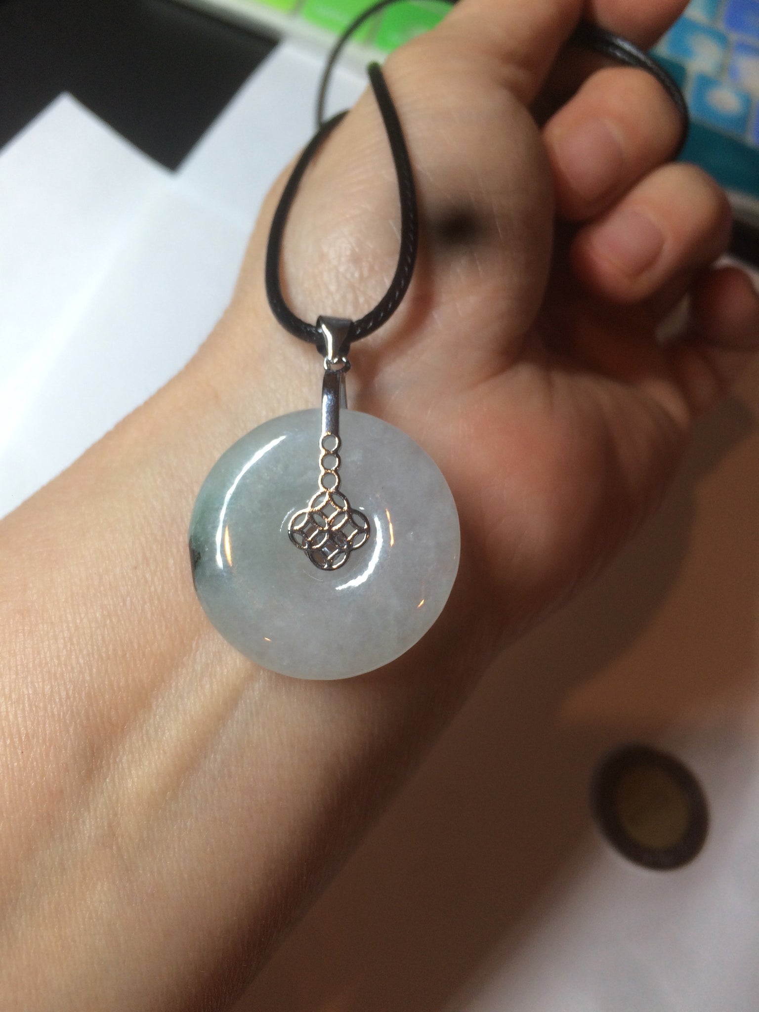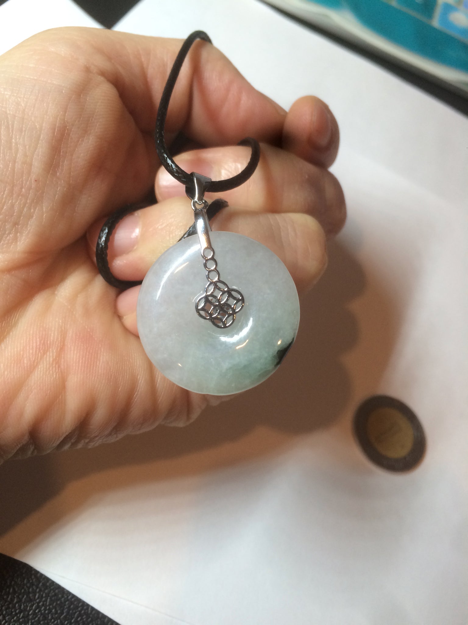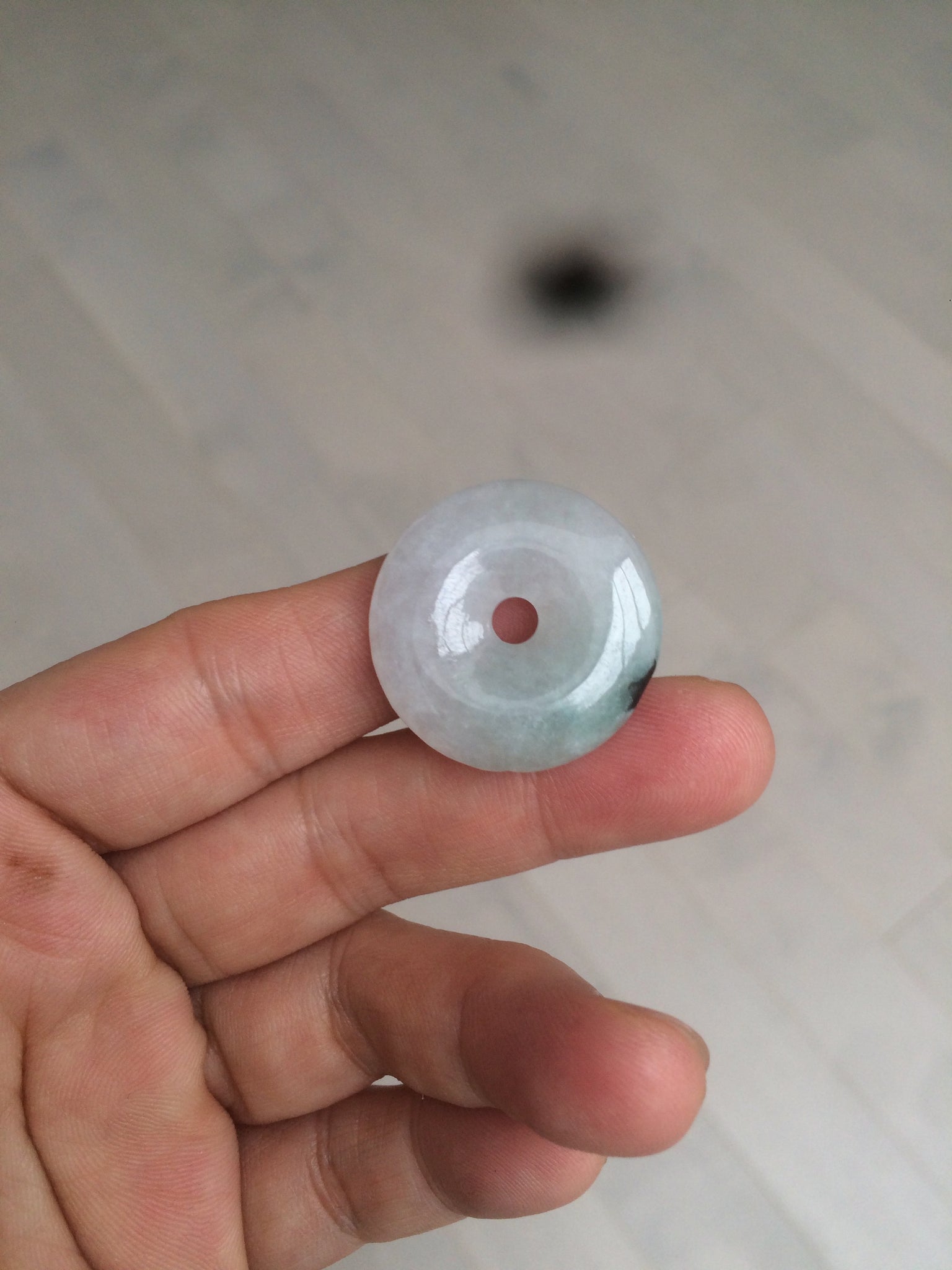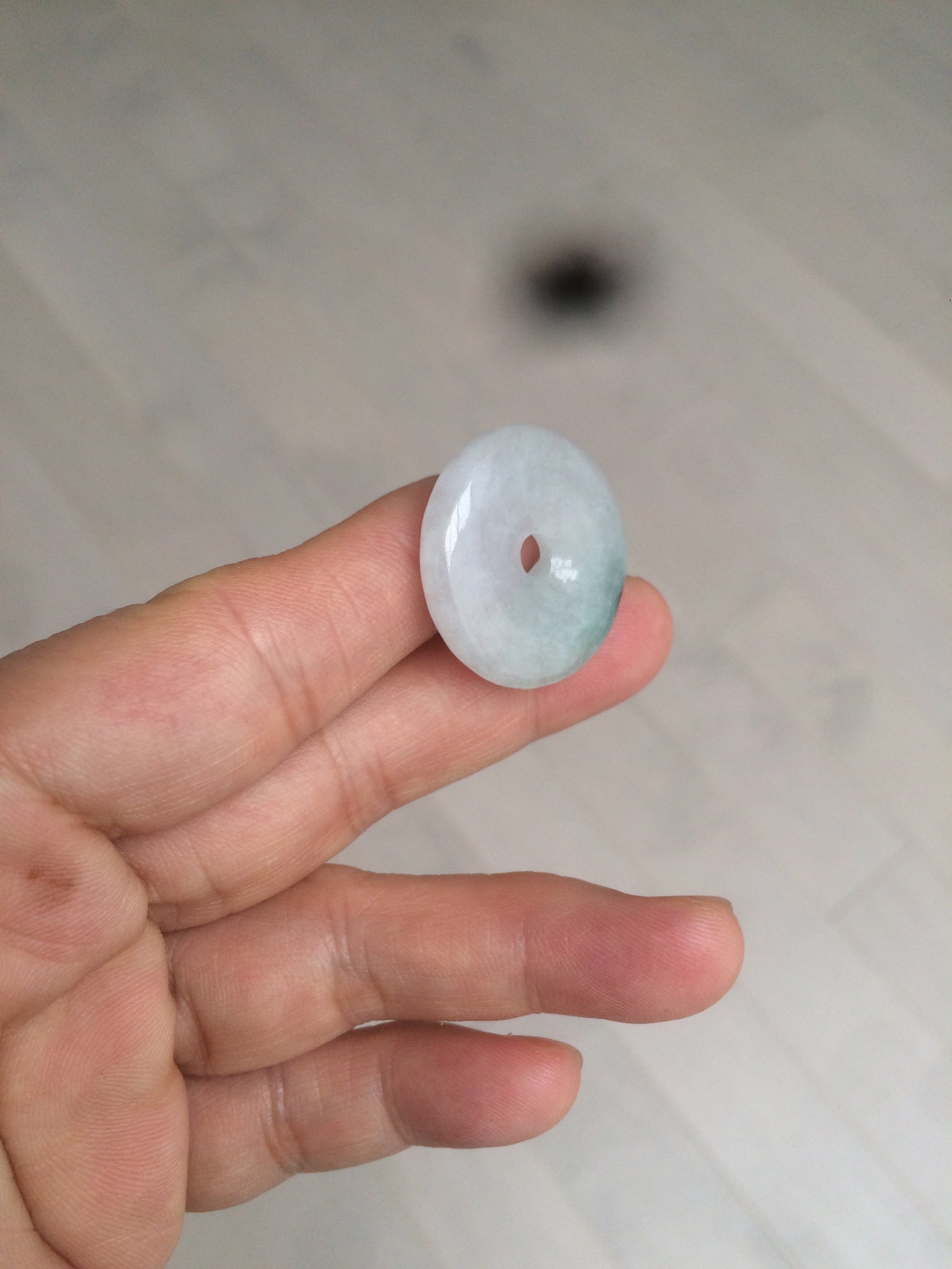 26.2/5.5mm 100% Natural icy watery green/white with green floating flowers jadeite Jade Safety Guardian Button(donut) Pendant/worry stone BF47