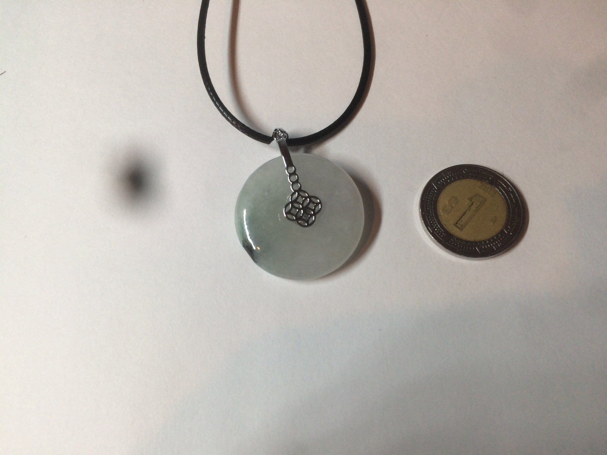 • Load image into Gallery viewer, 26.2/5.5mm 100% Natural icy watery green/white with green floating flowers jadeite Jade Safety Guardian Button(donut) Pendant/worry stone BF47