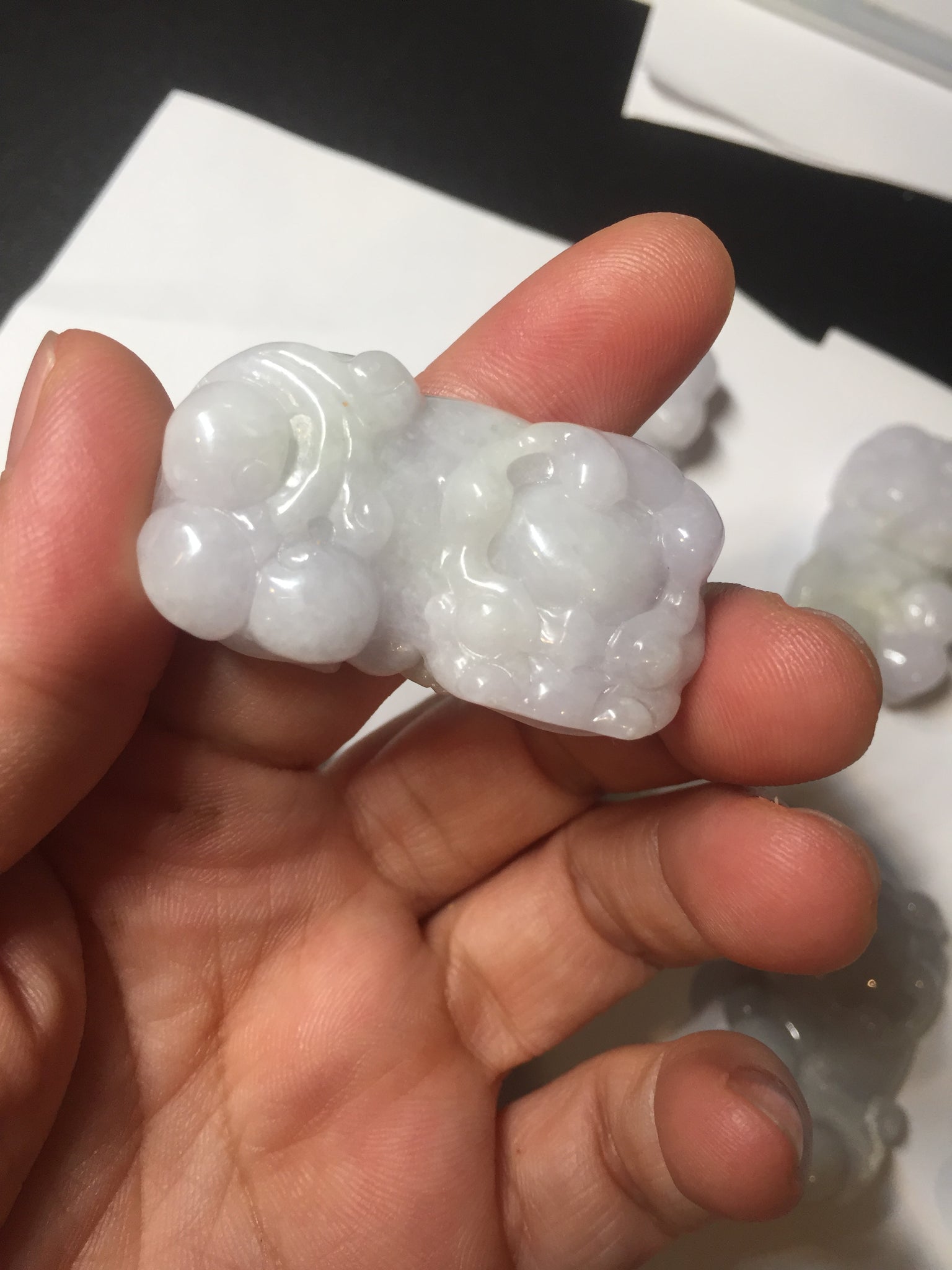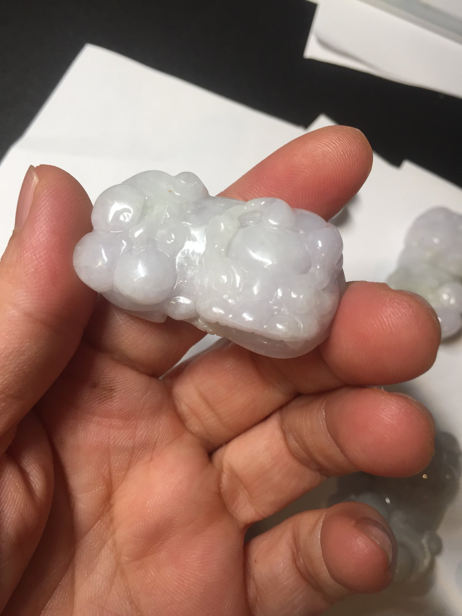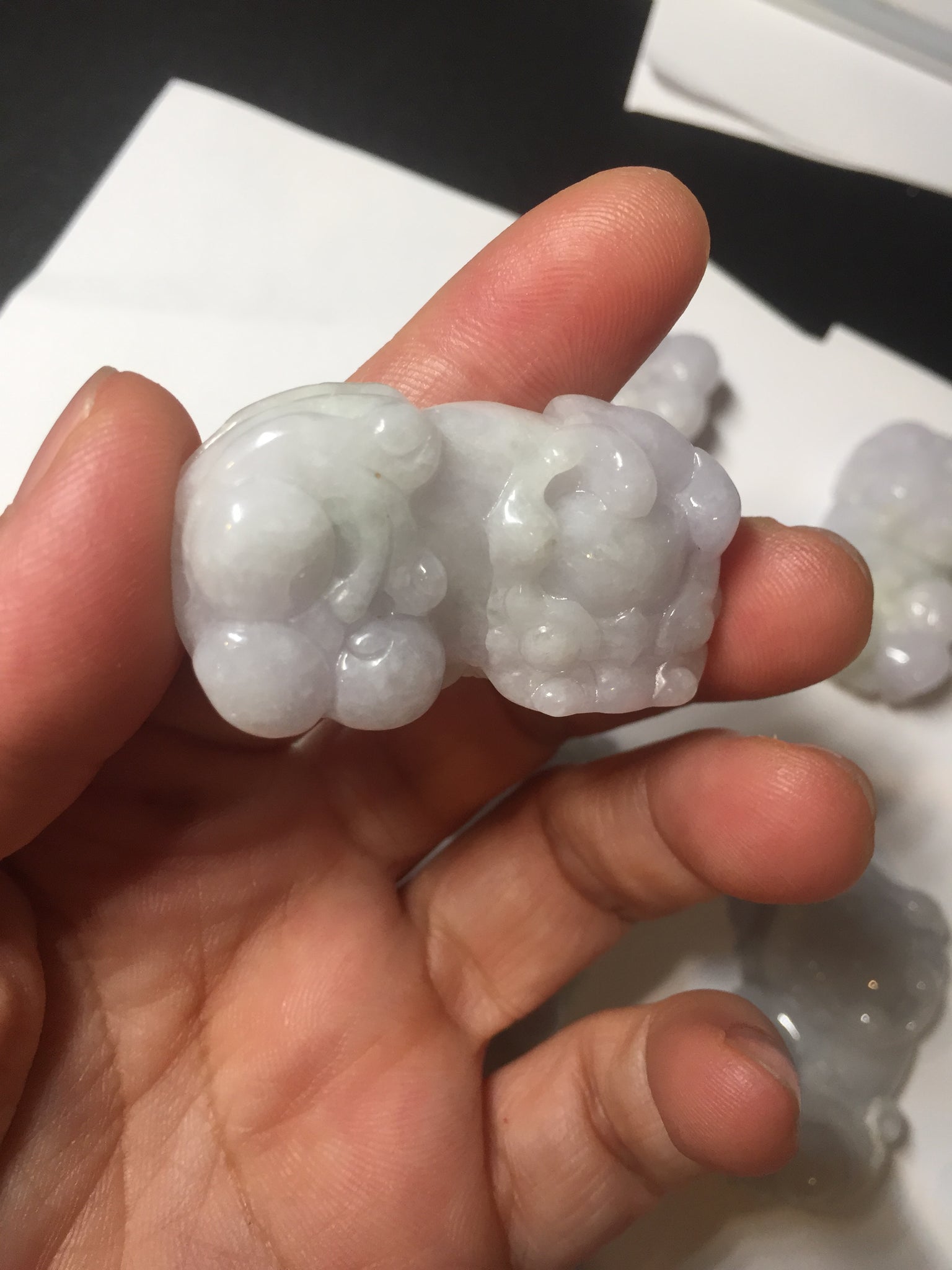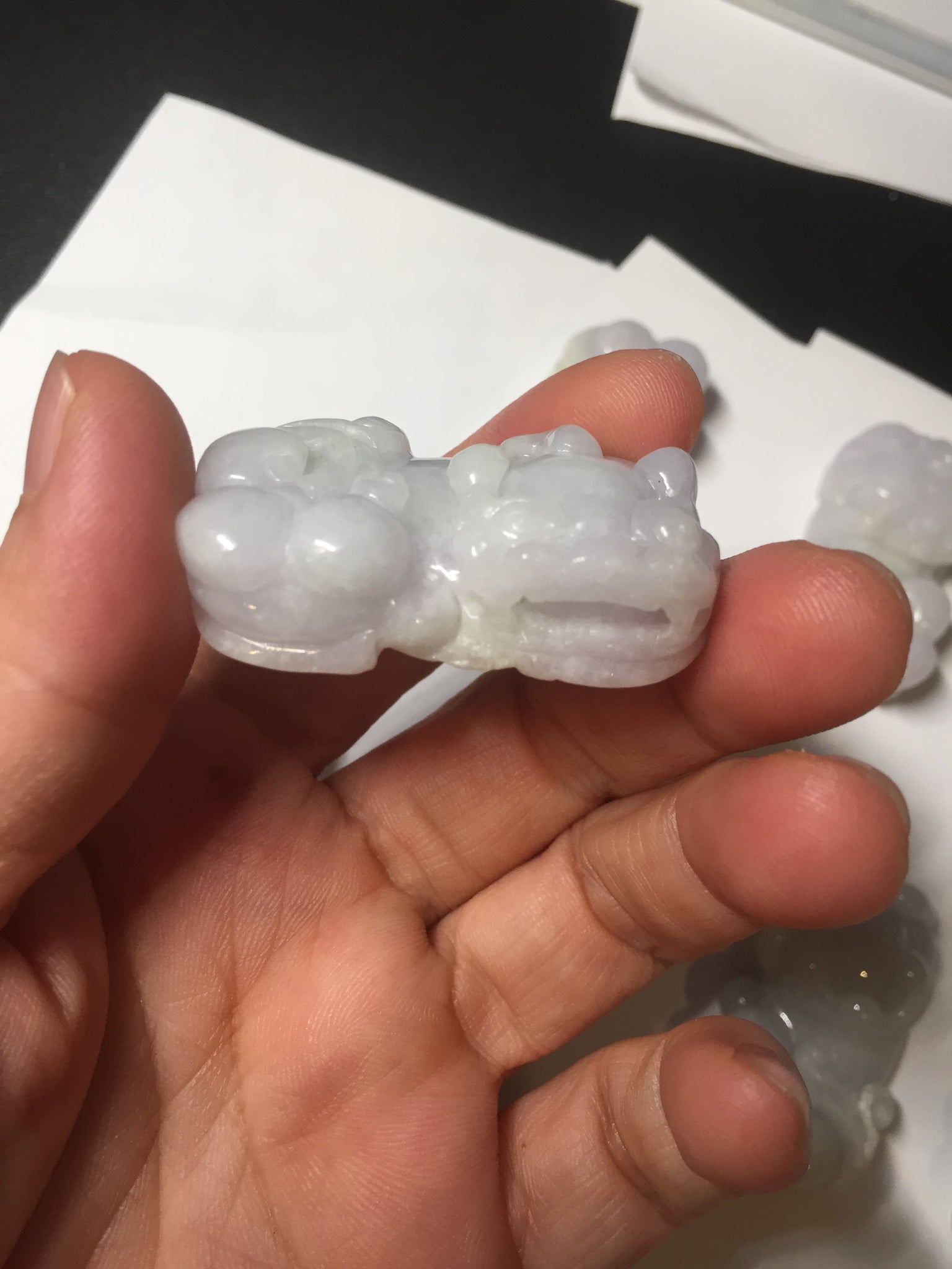The carving is not so delicate. The PiXIu is kind of flat style. No crack. May have some mineral impurity areas, and dry and rough surfaces. Cotton spots, lines, and areas. The purple is lighter than in the photos due to the purple color always being more camera-friendly.
