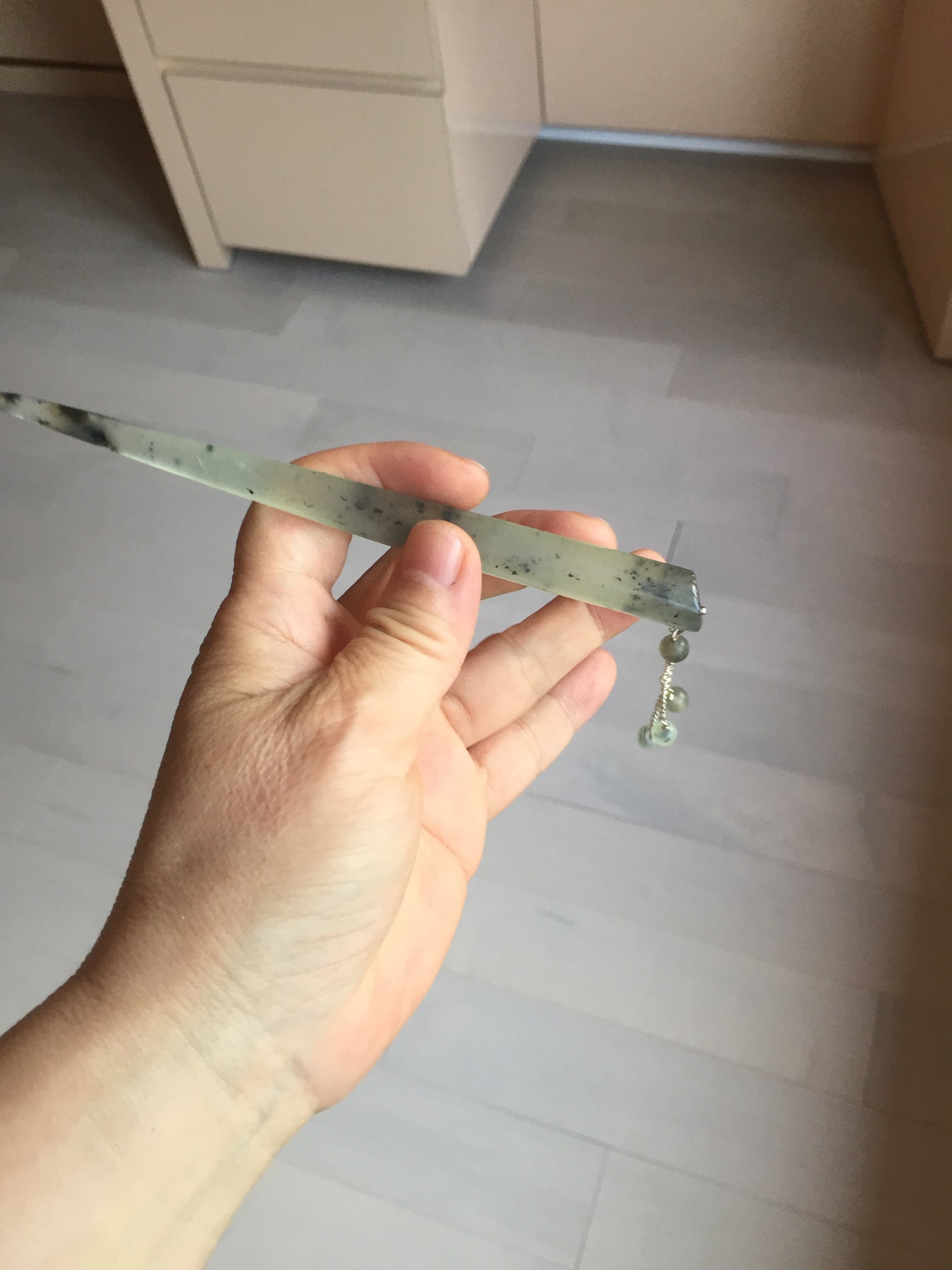 15.5cm 100% Natural icy watery black/clear (水墨) Xiu Jade Serpentine hairpin AW28