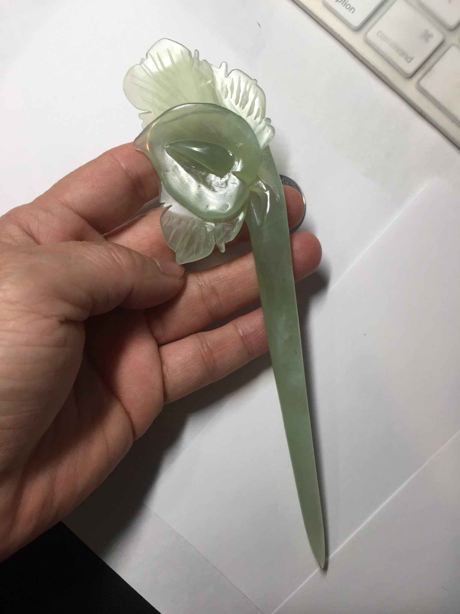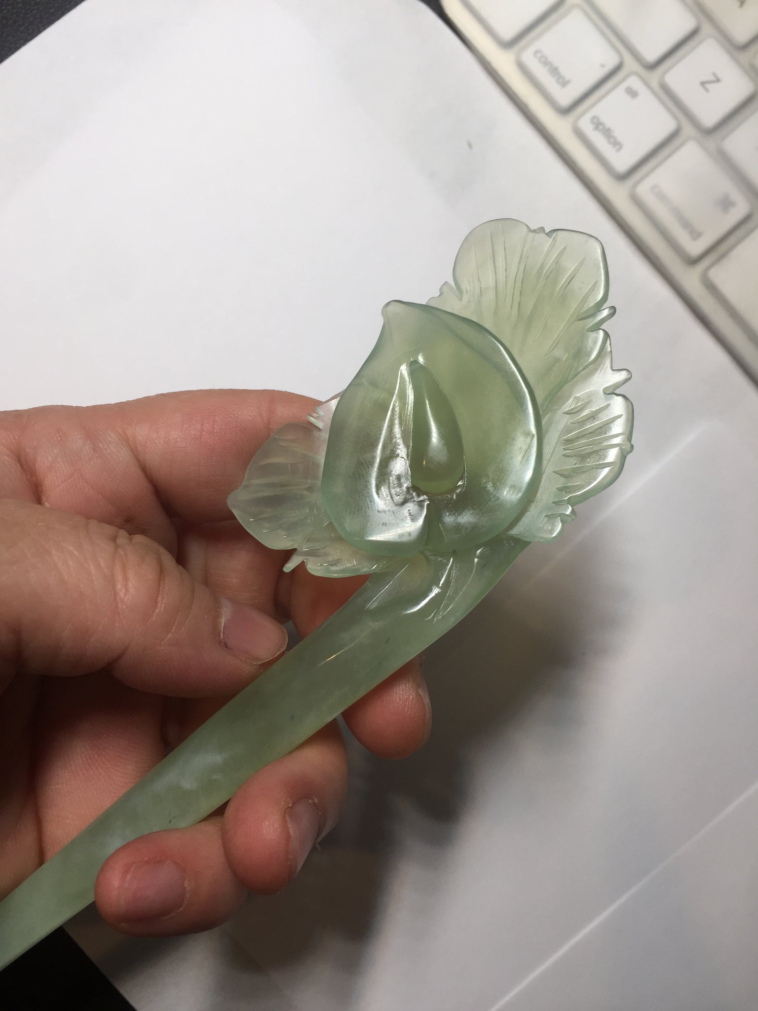 This is Xiu jade, not jadeite jade. Xiu jade belongs to the serpentine and Tremolite family. Mohs scale of mineral hardness:4.5 to 5.5. Density: 2.61. Which means it is softer and has a lighter weight than jadeite jade.