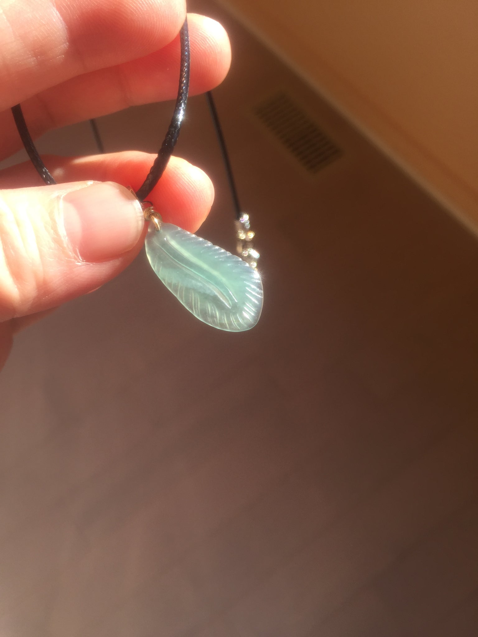 The carving shows graceful lines and soft ridges along the edges, giving the pendant movement and depth as if the feather is gently floating in the air. Its icy pale-green tone glows softly under natural light, showcasing the authentic translucency and smooth texture of untreated jadeite. In Asian culture, feathers also carry the meaning of “千里送鹅毛,礼轻情意重” — even the simplest feather gift can carry the deepest love and sincerity. This makes the jade feather a meaningful way to express care, gratitude, and heartfelt emotions.