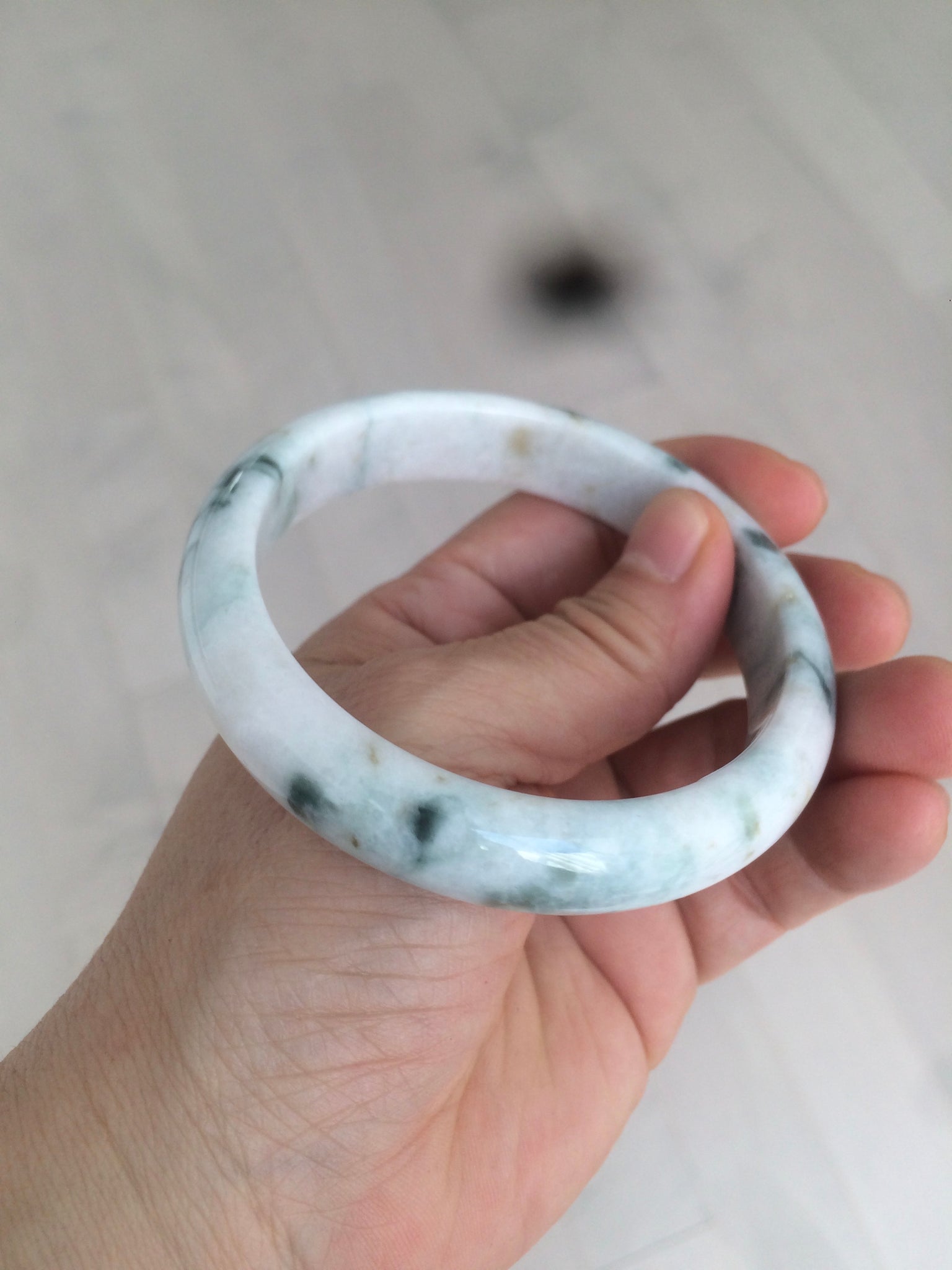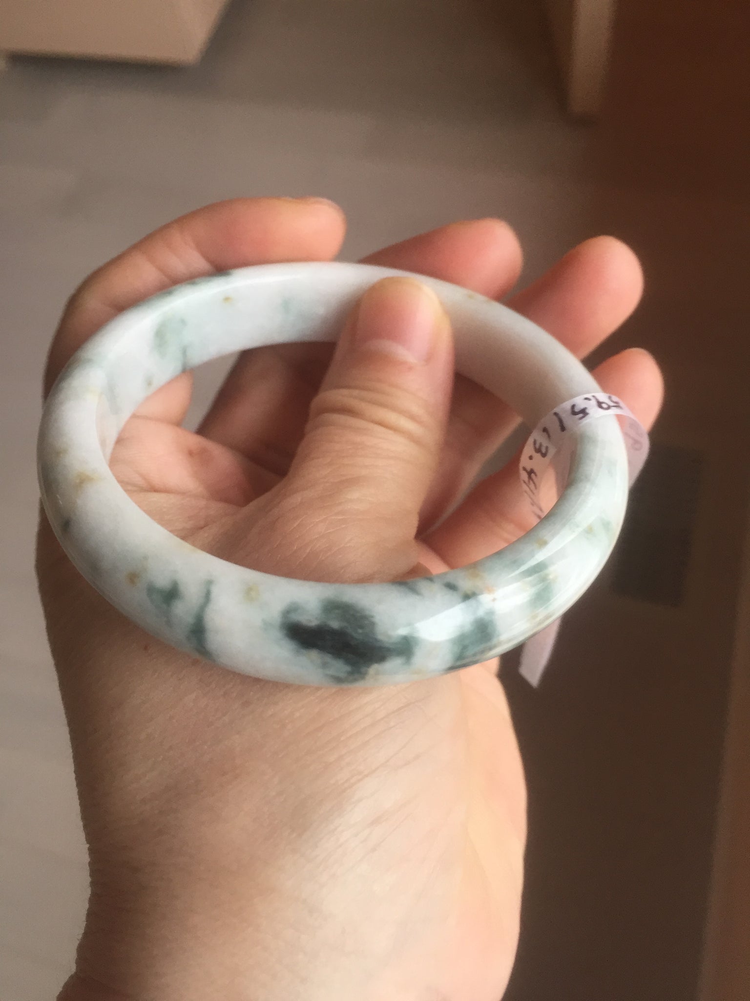 No crack. Some rough surface. Some cotton lines and hairlines that I did not mark. Please check the video closely. Thanks. Some cotton lines, and cotton spots. The texture feels like white porcelain. No transparent. No watery. The purple is super light. Just a hint of it.