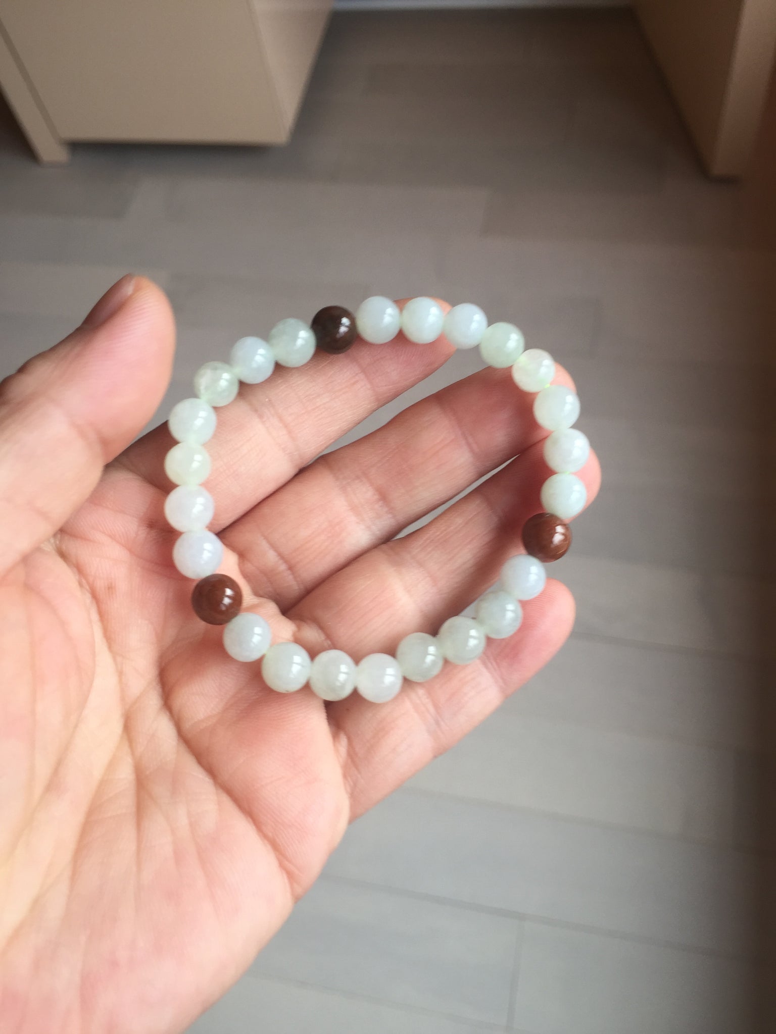 Bead size: around 6.8-7.2mm. Occasionally, one or two beads are smaller or bigger. For a bangle size 50-55mm hand.