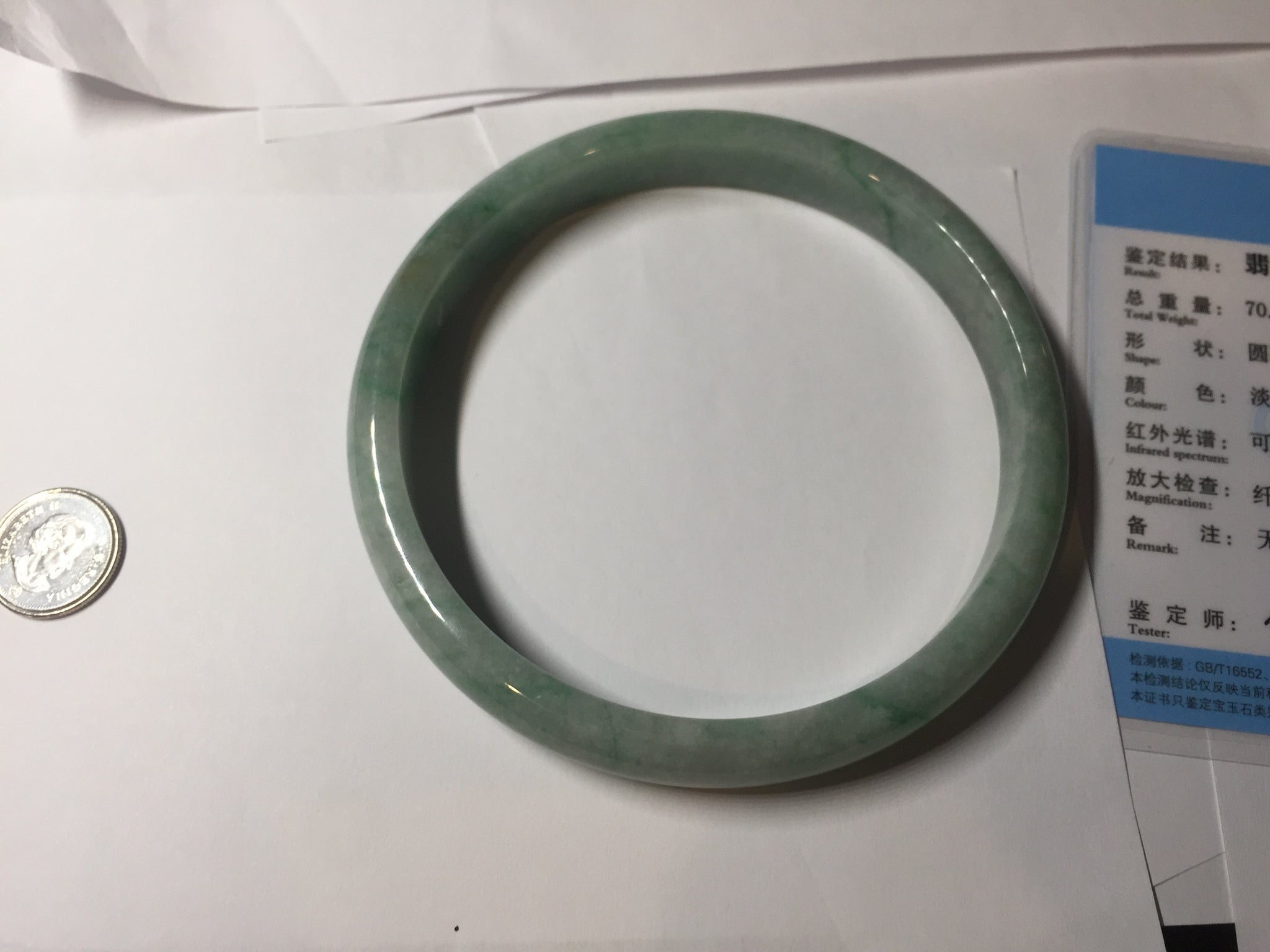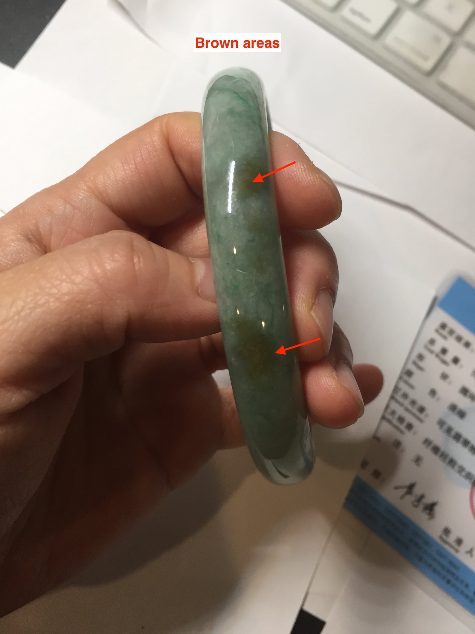 Some cracks or fissures with a little bit of wax. The bangle is solid(Guaranteed!). One rough spot. Some hairlines, cotton lines, or cotton areas. Two brown areas with not prefect smooth surfaces. Not transparent.