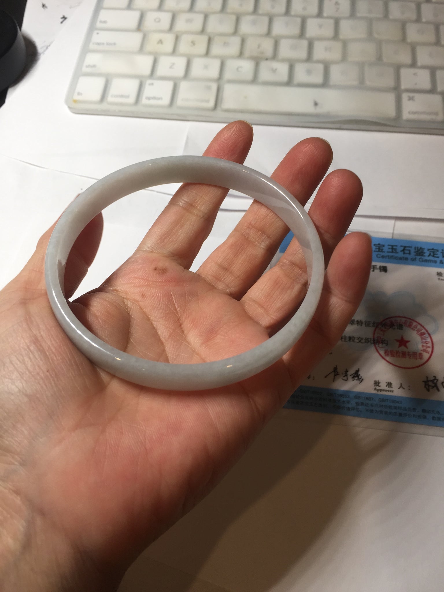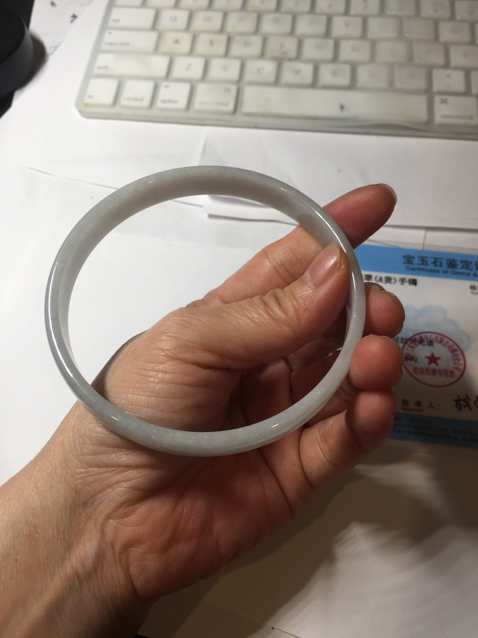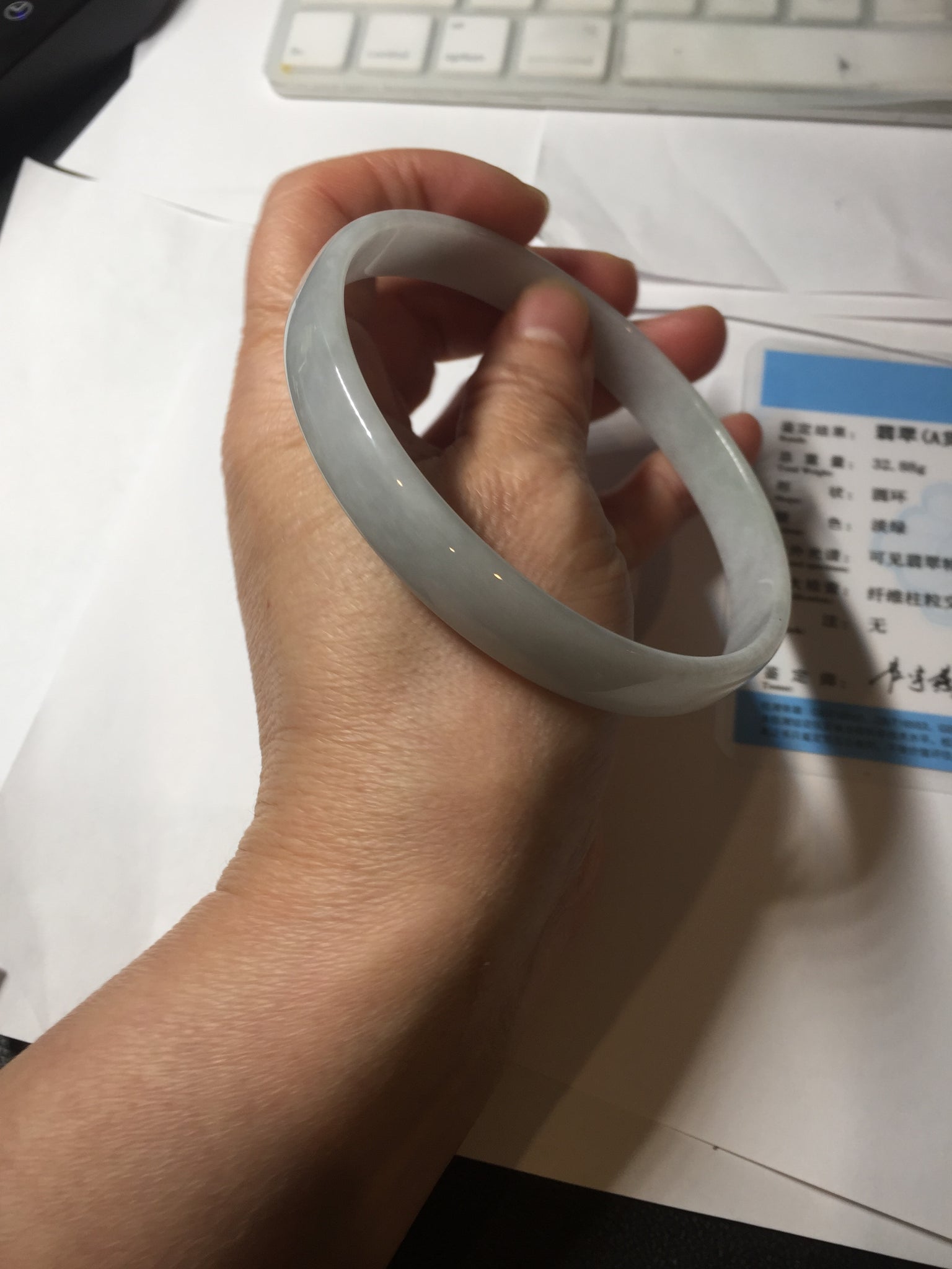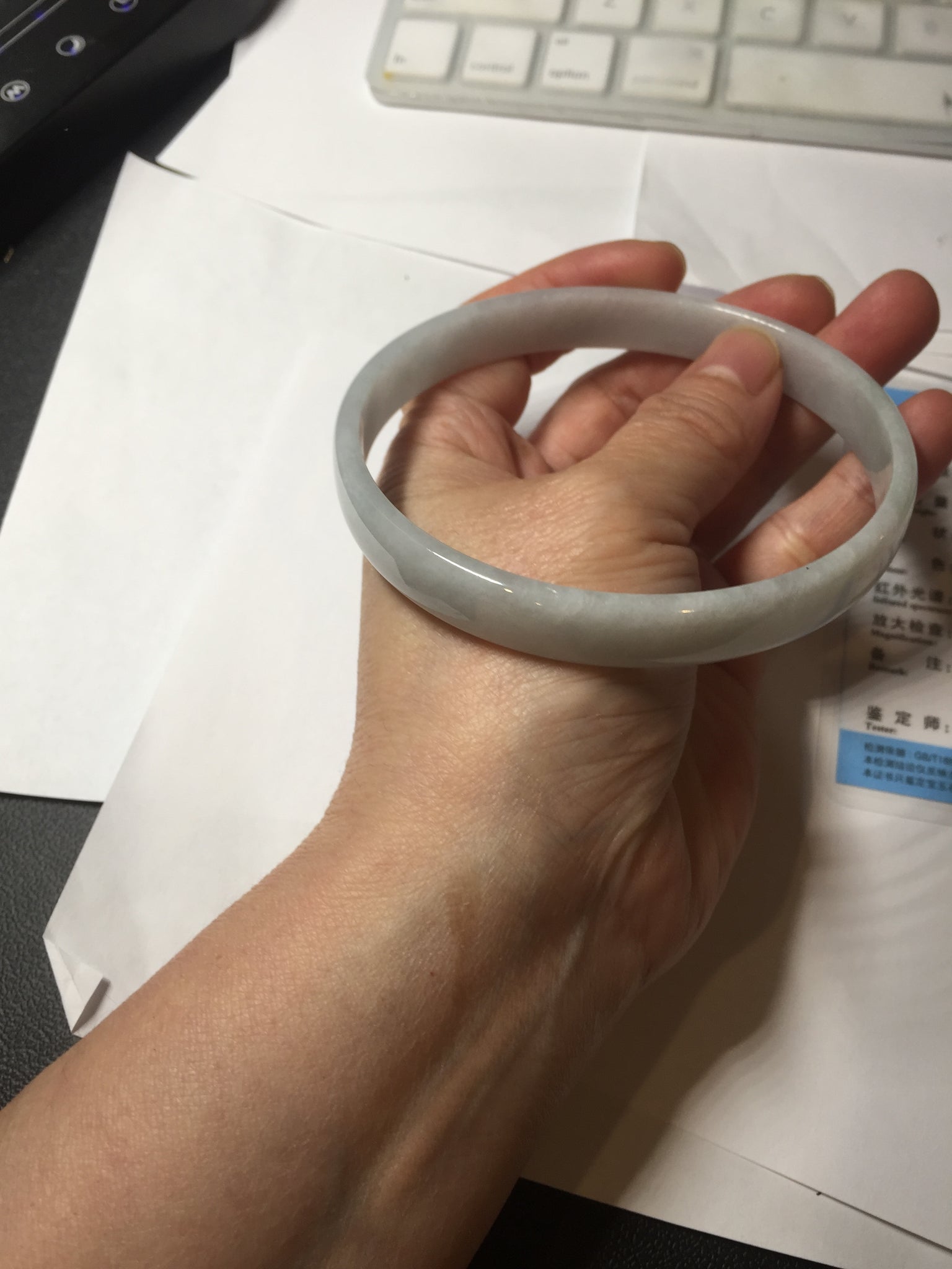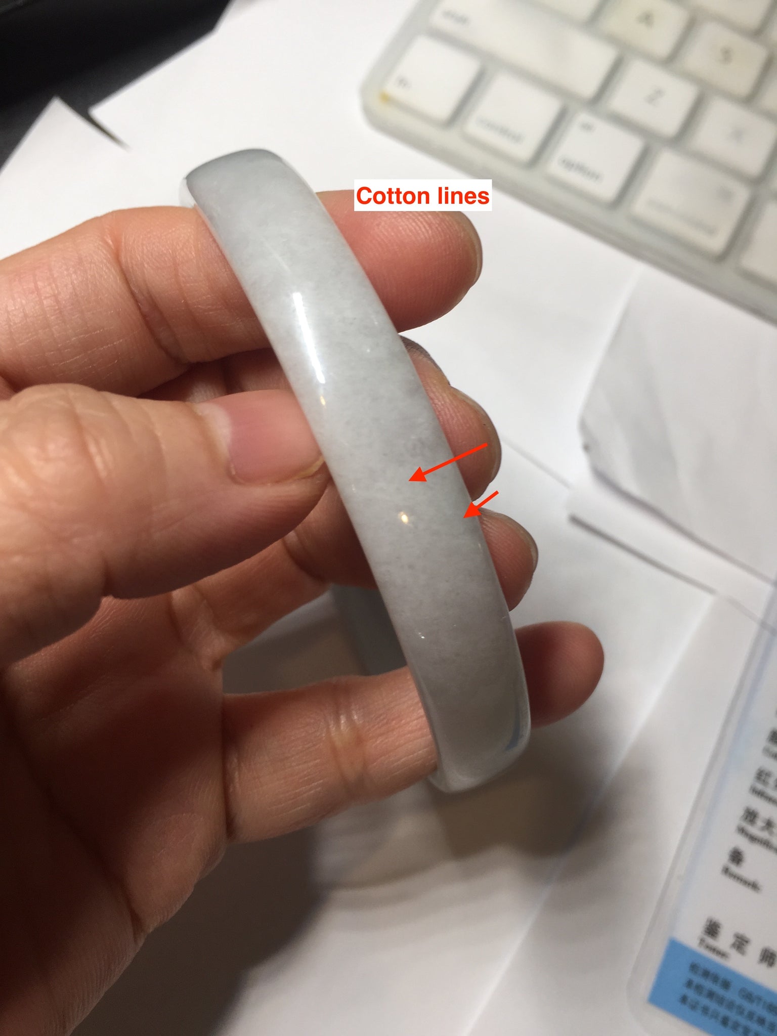 No crack. One hairline. Some cotton lines or cotton areas. Not transparent.