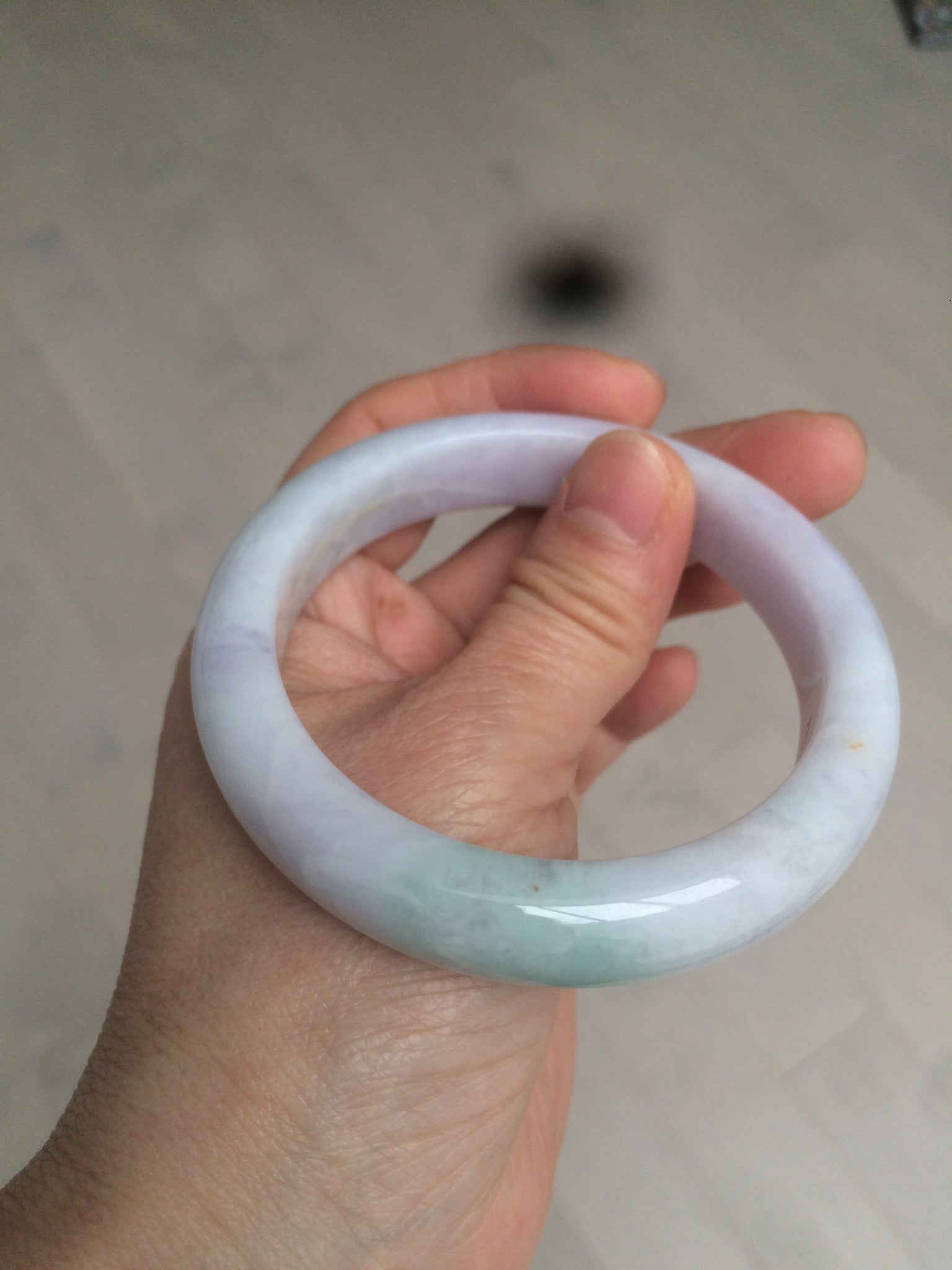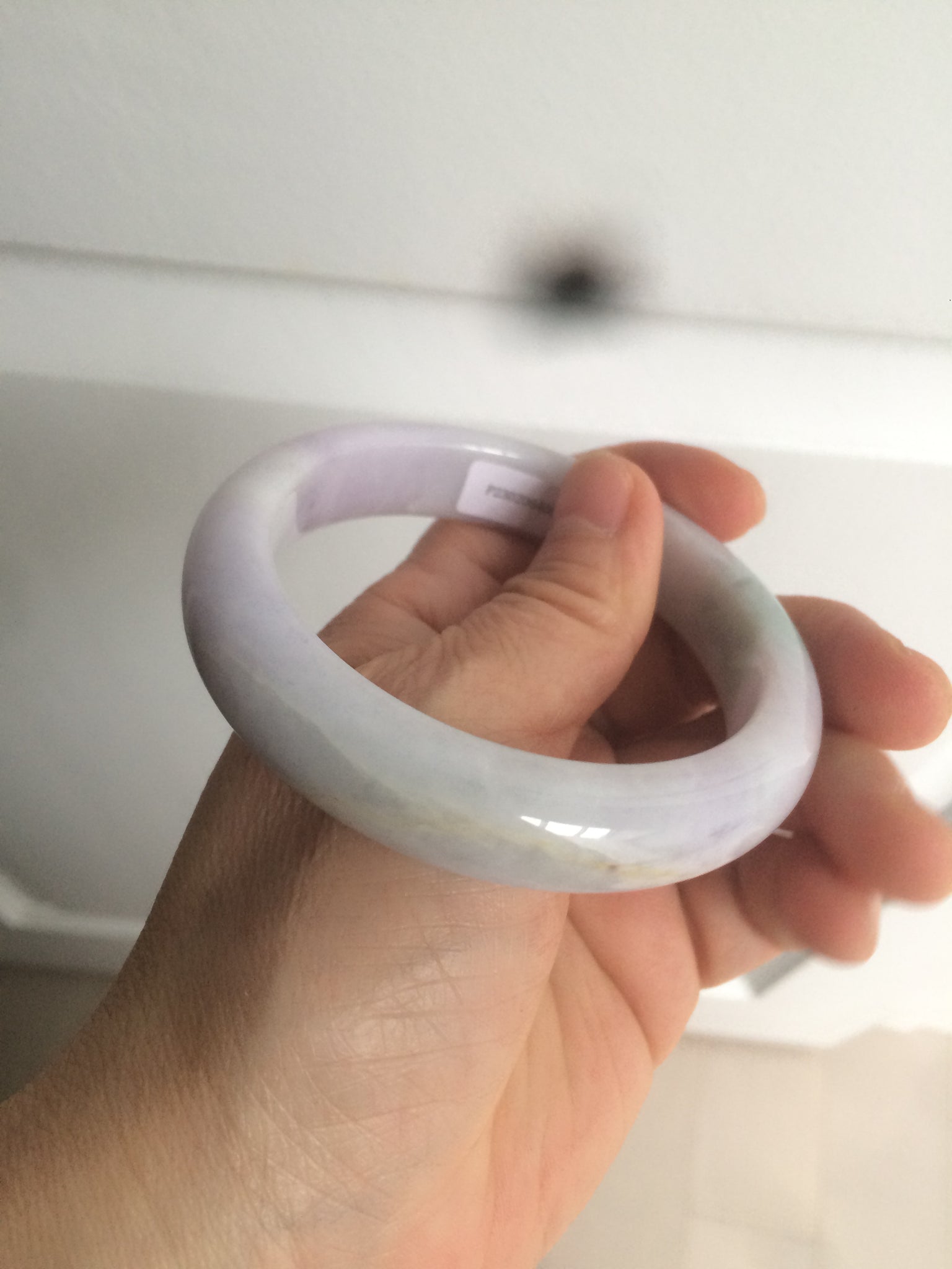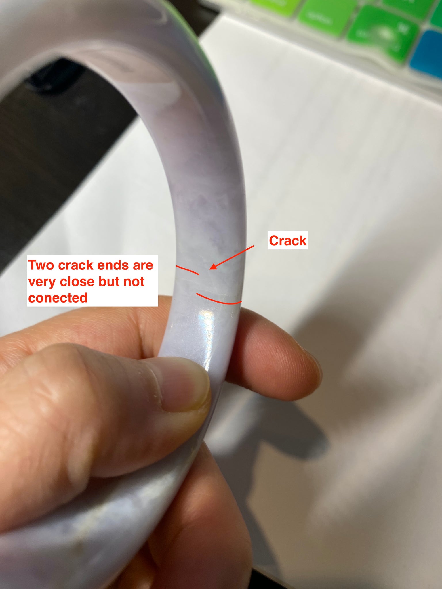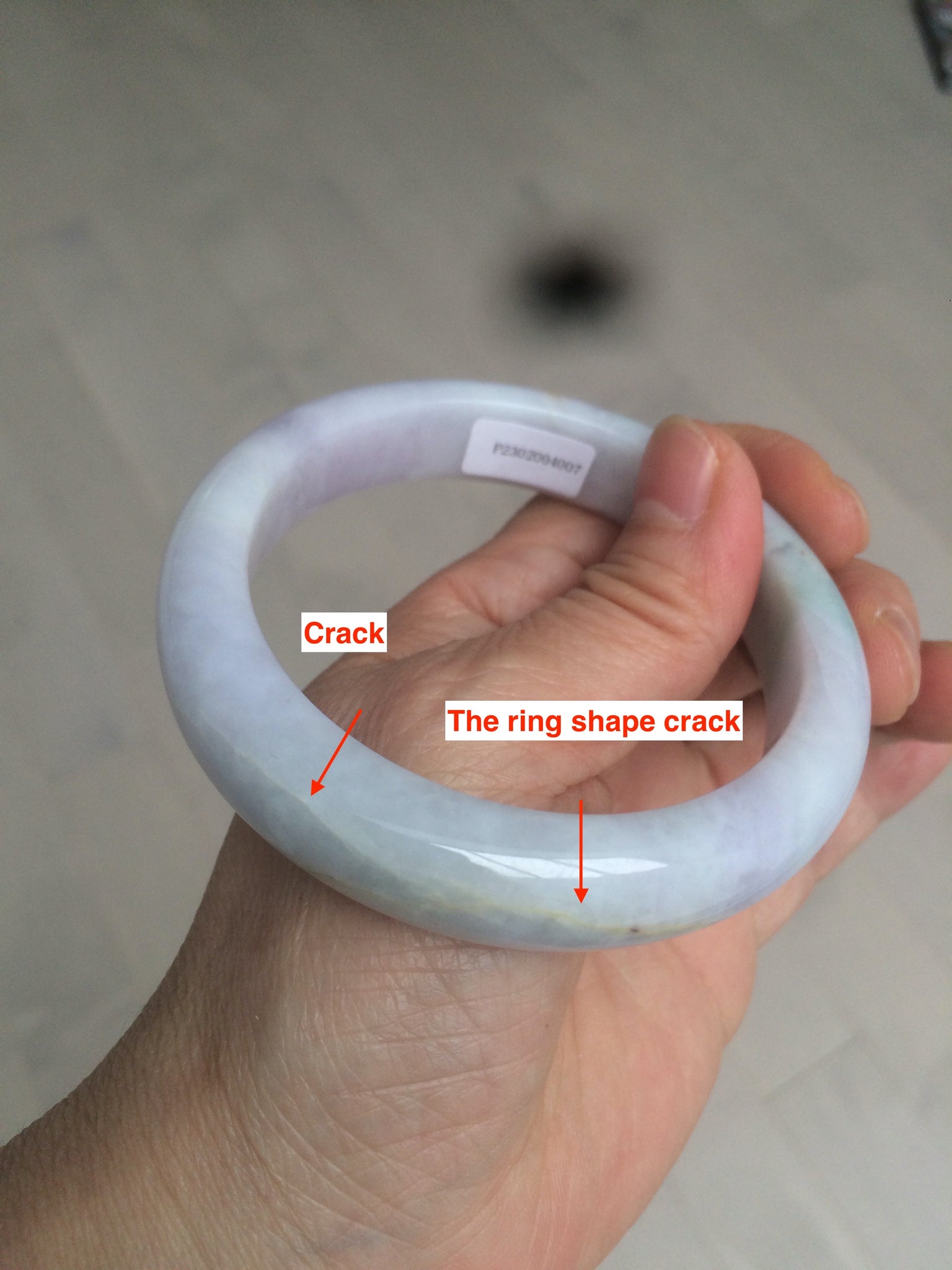 Some cracks and hairlines(photos may not show all). One of the cracks is ring shape with wax. The bangle is still form. Cotton areas and cotton spots. The purple is lighter than in the photos due to purple is always camera-friendly.