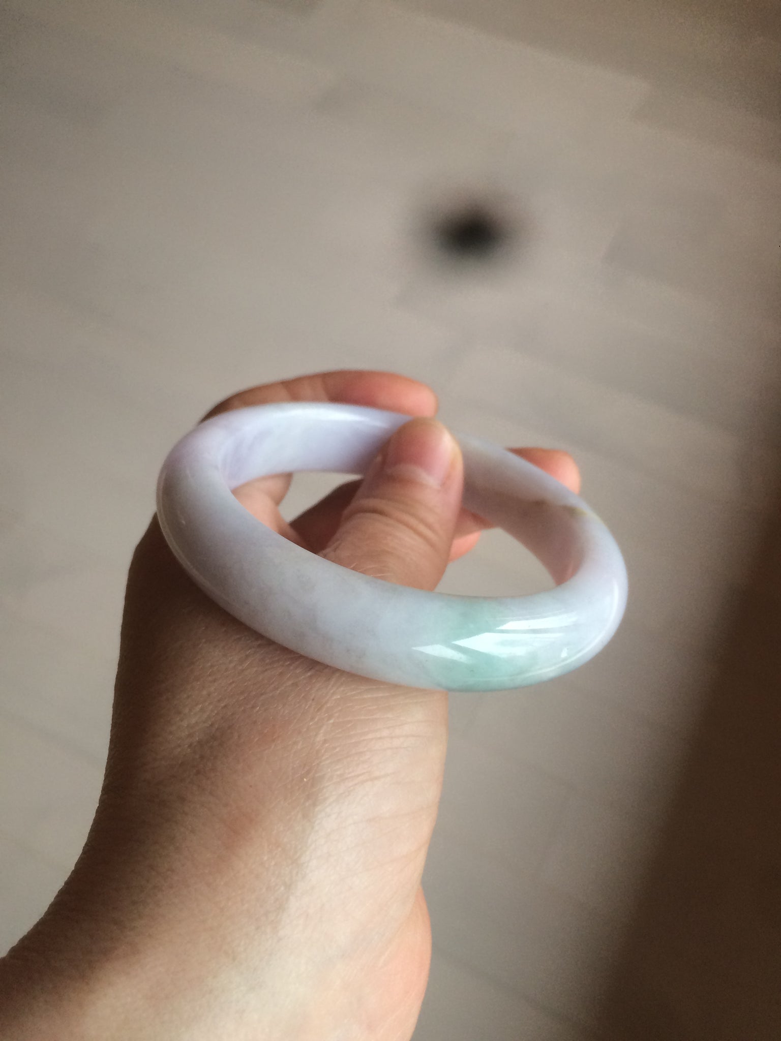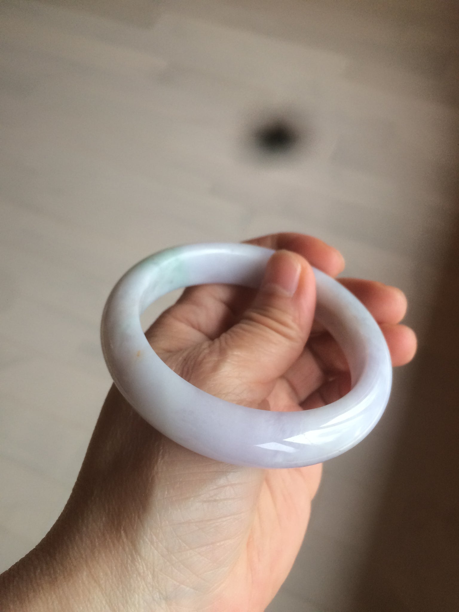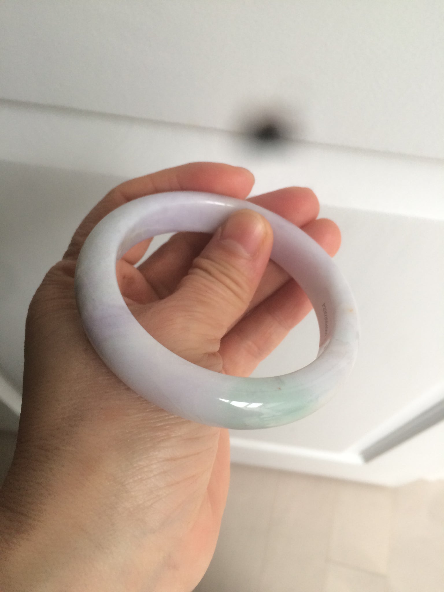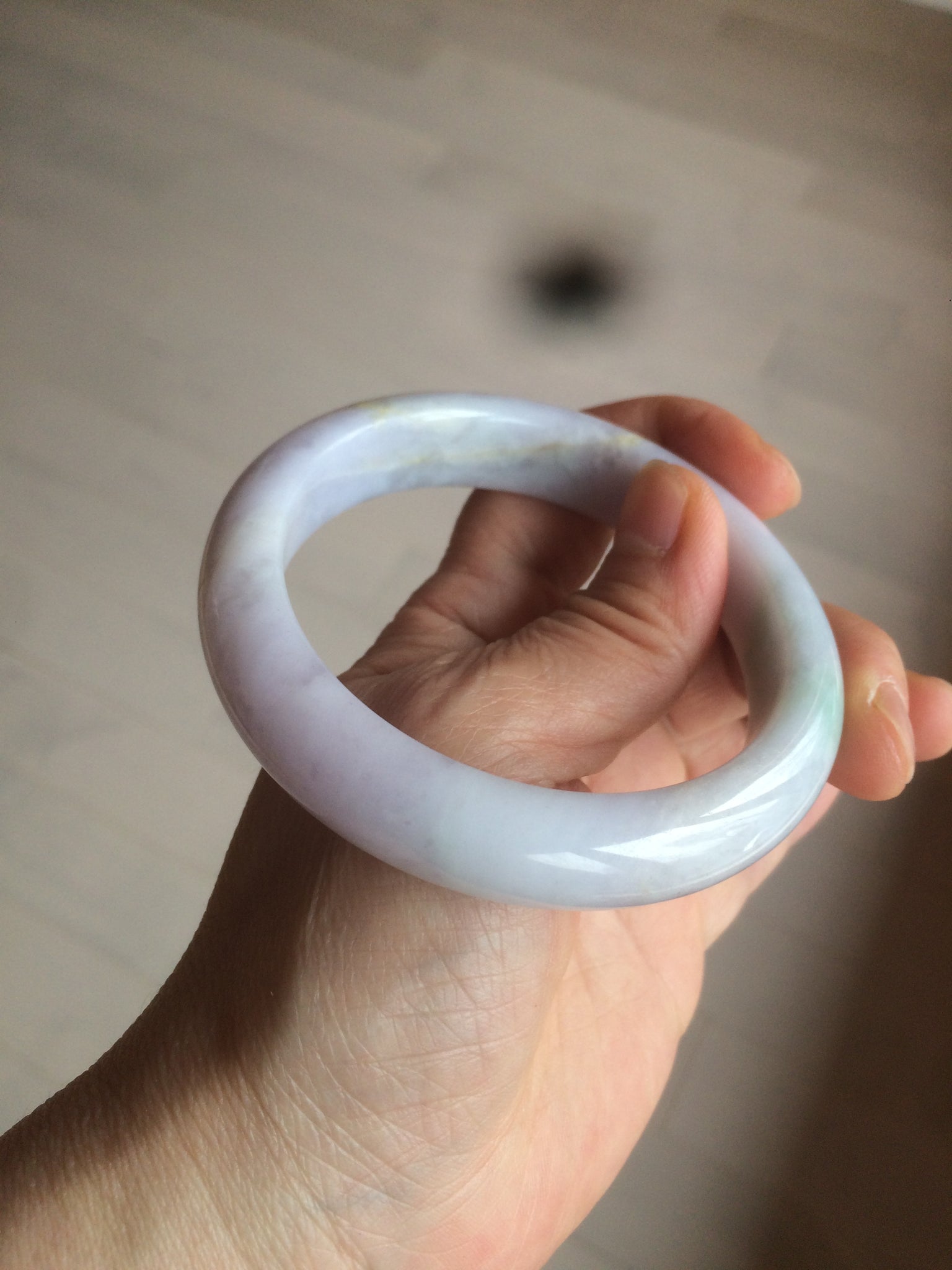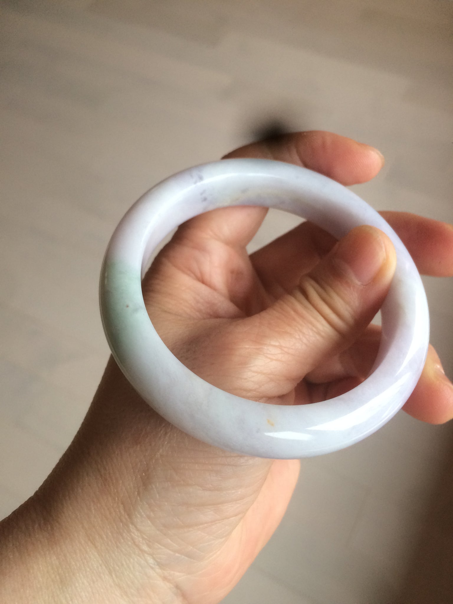 Some cracks and hairlines(photos may not show all). One of the cracks is ring shape with wax. The bangle is still form. Cotton areas and cotton spots. The purple is lighter than in the photos due to purple is always camera-friendly.