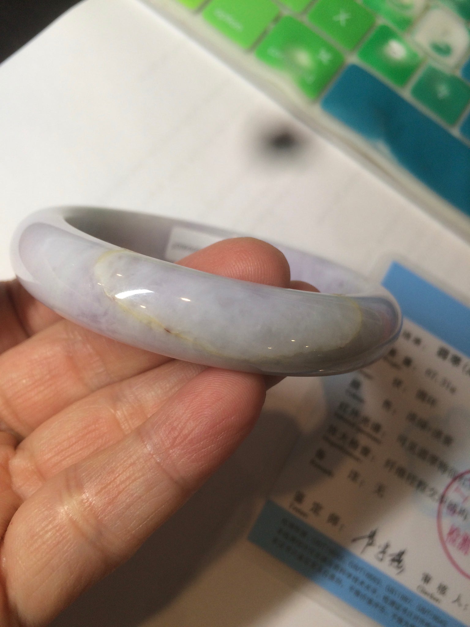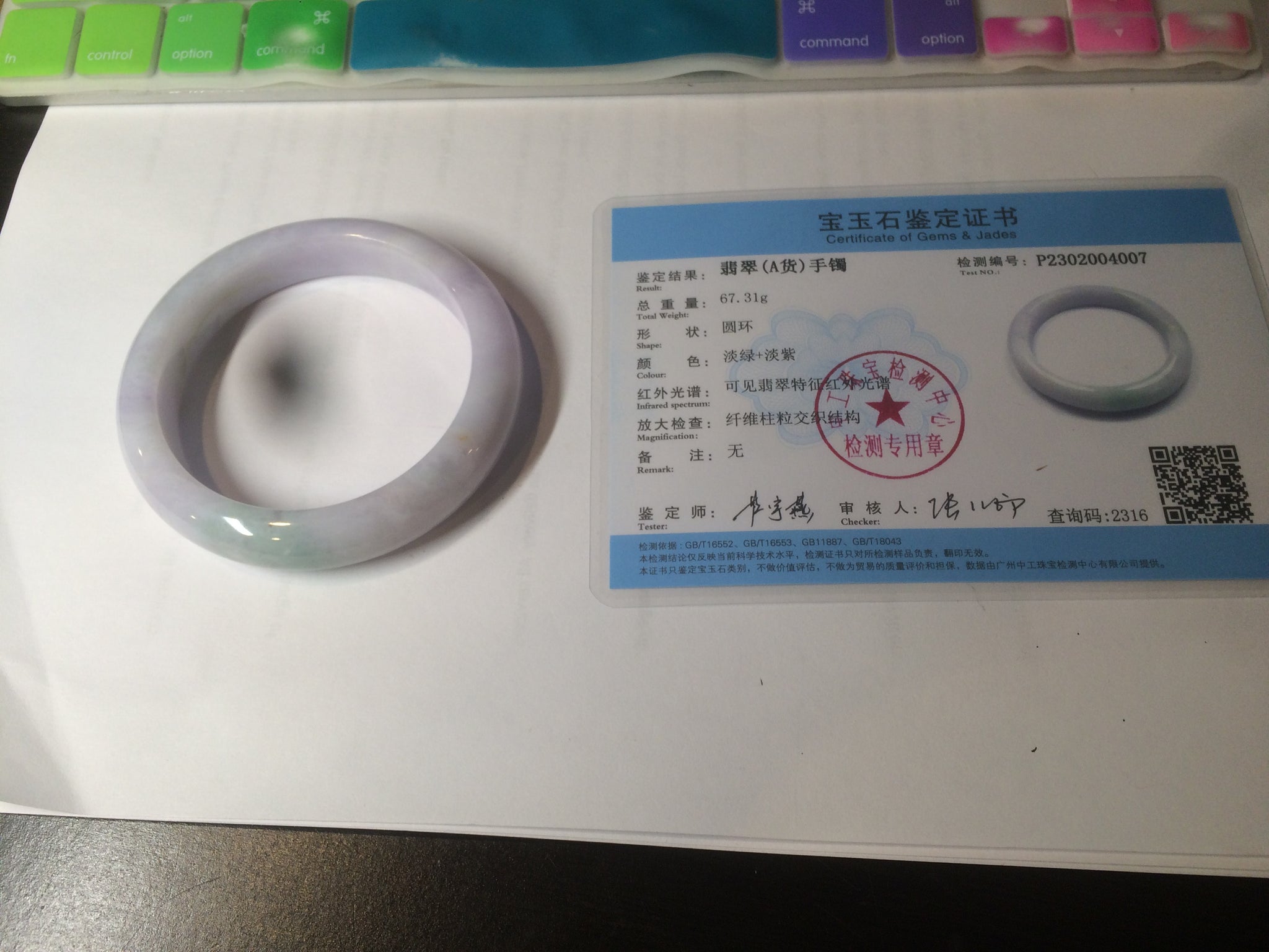 When a bangle has green, yellow, and purple, it means "Fu Lou Shou", Blessing, good fortune, and happy long life. It is very rare.